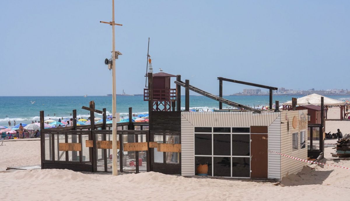 A pocos días de que comience oficialmente el verano, y comiencen las vacaciones escolares, Cádiz desmonta un chiringuito. El Ayuntamiento ha mandado ejecutar esta labor por "razones de salubridad y seguridad".