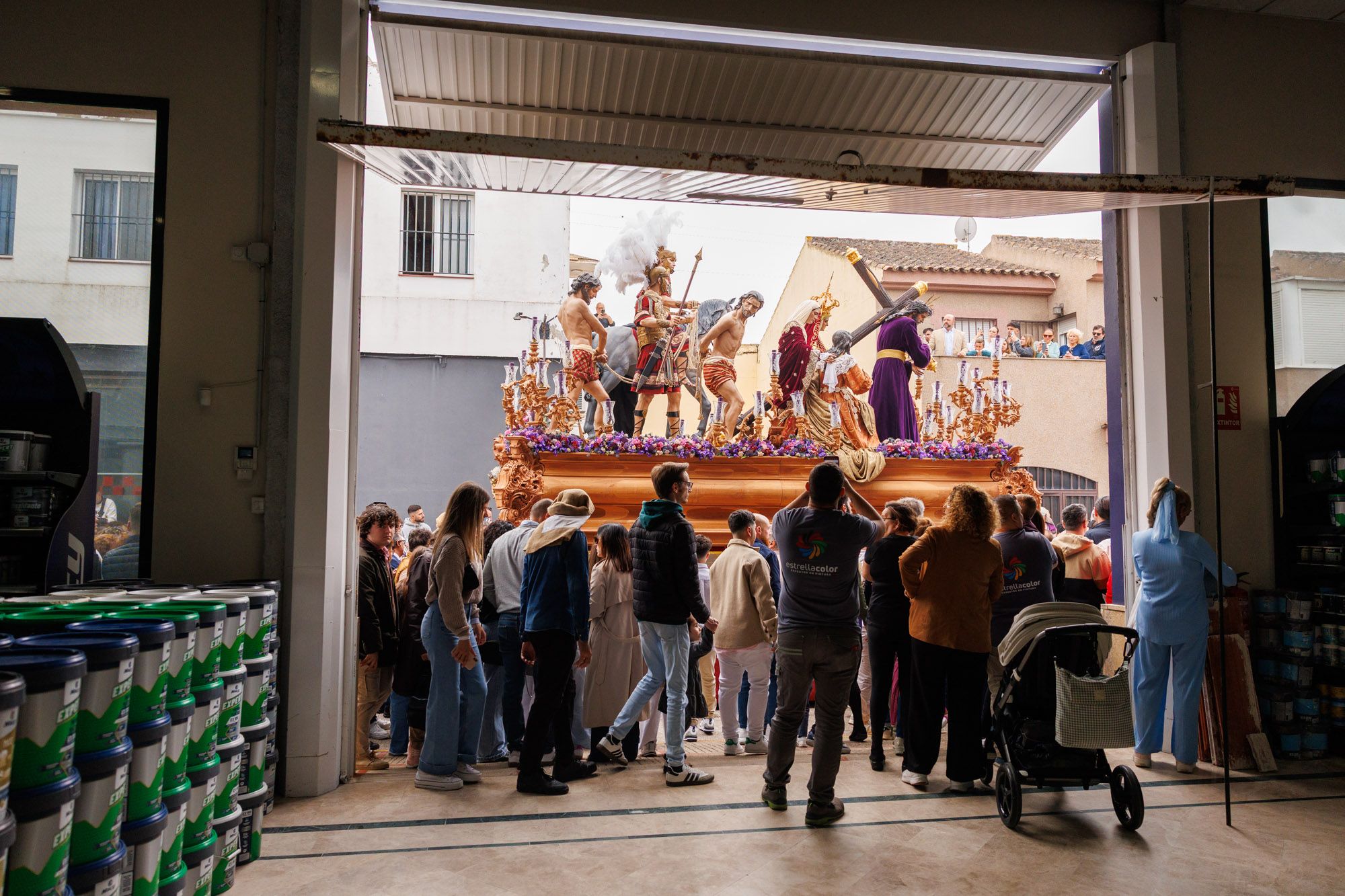 Momento de gran expectación, donde el paso de La Entrega, acompañado por la Banda del Rosario, marca un hito en la Semana Santa, mientras miles de fieles se agolpan para rendir homenaje a la hermandad en su histórico recorrido.