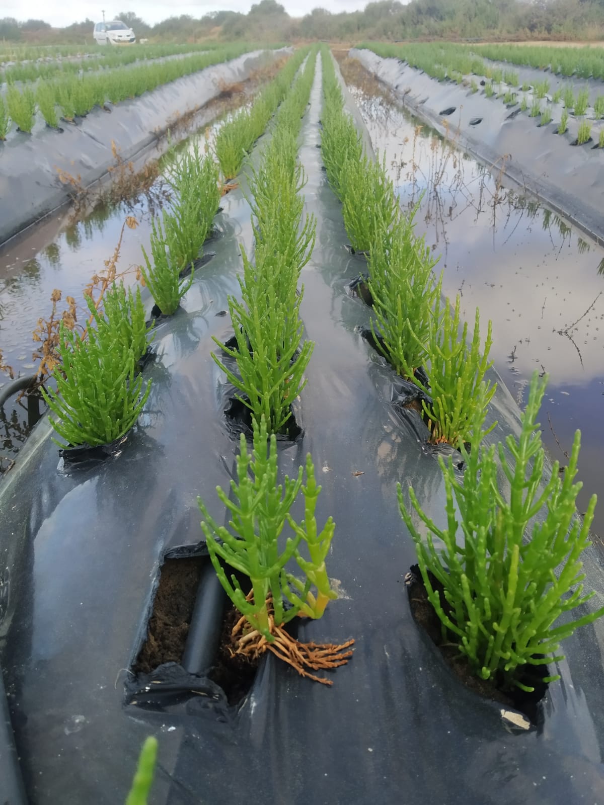 El primer cultivo experimental tuvo lugar en 2017. A partir de entonces, comenzaron a realizar ciclos de cultivo y, finalmente, a obtener sus propias semillas. No fue hasta el año pasado cuando lograron comercializar la salicornia de Isla Cristina. Así, los emprendedores constituyeron la empresa Halofitas Onuba embarcándose en una nueva etapa. Manuel, CEO de la entidad, aunque desempeña cualquier labor, -“de operario de campo paso a hacer funciones de perito agrícola, a medio día paso a ser comercial, después repartidor y por la tarde noche contable”- quedó prendado de este vegetal que da nombre a la empresa. “Las plantas de marisma son halófilas, halo- es sal, y fila- que necesita, se desarrollan en medios muy salinos”, señala.