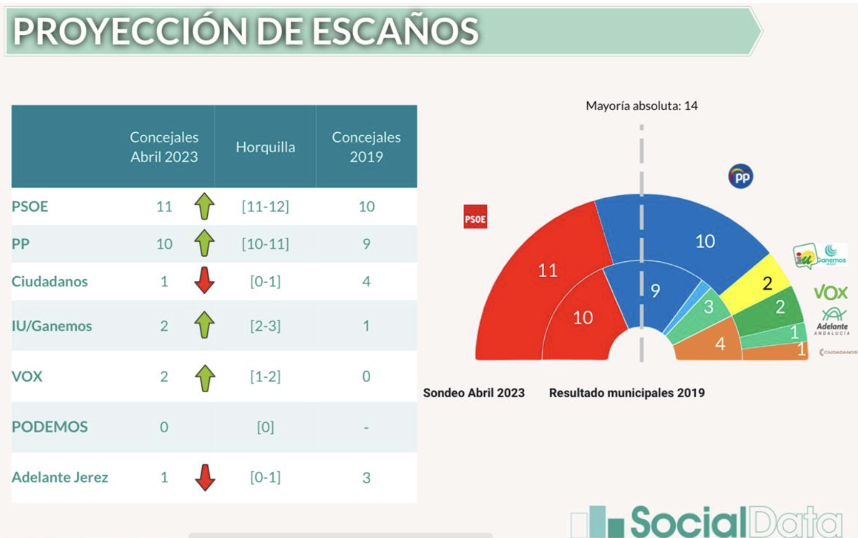 En las filas populares hay confianza de que Pelayo iguale al menos los resultados de 2015, cuando fue la lista más votada con 11 concejales. Eso quizás pudiera ser suficiente si se atienen al estudio demoscópico interno que manejan desde Ciudadanos Jerez, donde los 2 de Vox y el edil que retiene la candidatura liderada por Manuel Méndez podrían bastarle para gobernar el Consistorio jerezano.