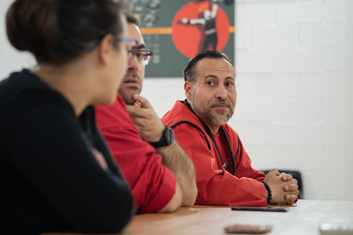 Eduardo Arniz (izq.) y José Carlos García Lojo durante la entrevista. FOTO: MANU GARCÍA.La historia de Chari es una de las muchas que llegan a los cursos que imparten José Carlos García Lojo (El Puerto, 1977), sexto dan de denfesa personal, y Eduardo Arniz Rosa (Jerez, 1977), tercer dan de defensa personal, en Moaré Espacio Creativo, ubicado en el polígono Santa Cruz, Jerez. "Antes estas clases eran mixtas, no era tan exclusivo para mujeres", informa García Lojo, que lleva siendo instructor de defensa personal desde hace más de 28 años. No obstante, dice que ha habido una necesidad de enfocar estos talleres para el género femenino "por toda esa porquería que se está viendo en los medios, esa serie de abusos y asesinatos que se ven a diario en medios de comunicación". "La sensación de miedo es real. Los malos están libres", destaca Susana, pareja de Chari durante uno de los talleres.