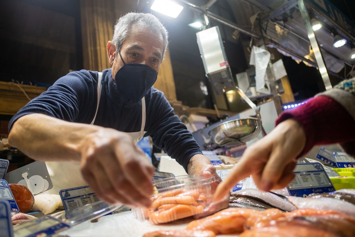 Jesús no pregona, pero tiene ángel vendiendo. Cuenta anécdotas, cuenta recetas de cómo prepara los pescados a sus hijos, tiene una niña y un niño, y se bebe un buchito de cerveza mientras afila los cuchillos a la velocidad de la luz. El Cuevas tiene a rebosar su puesto de género. Se nota que diciembre tiene ‘r’ —dicen los expertos que en los meses con ‘r’ el marisco es abundante— y, claro está, se acerca la Navidad. Será la Navidad del covid. Una extraña celebración marcada por la pandemia y la tragedia. Aun así, con allegados y familiares, habrá cenas y almuerzos especiales.