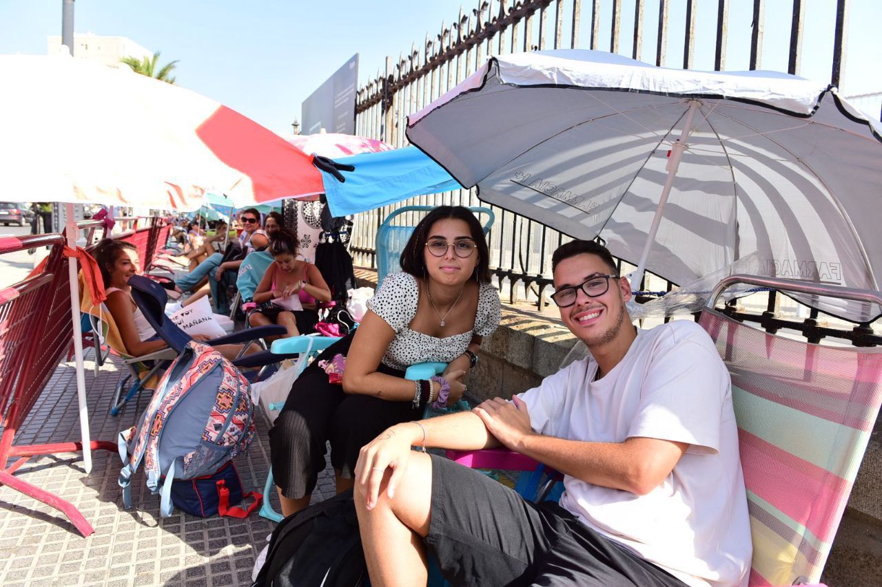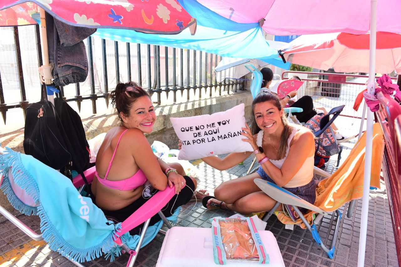 Que los termómetros superen los 33 grados no ha sido excusa para que sus seguidores esperen más de 24 horas de cola para poder verlo de cerca. Aunque algunos van equipados con sombrillas y neveras, desde la organización van a facilitar agua y asistencia médica para quien lo necesite ante el peligro de esperar a pleno sol durante toda la tarde del viernes. Los primeros en llegar fueron dos jóvenes a las 21.30 del jueves, dispuesto a ver al cantante onubense en primera fila y no perderse ni un detalle.