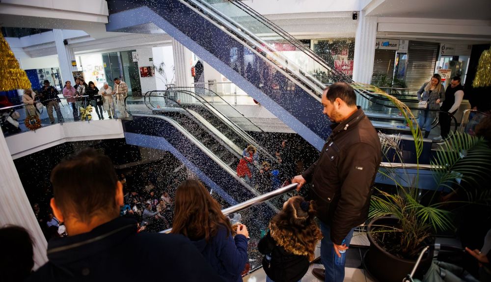Como siempre, la planta baja del centro se llenó para ver caer esos copos de nieve que con tanta ilusión se reciben por los niños. También en las plantas superiores había personas que no se querían perder una costumbre que es de obligado cumplimiento para muchos cuando llegan los días navideños.
