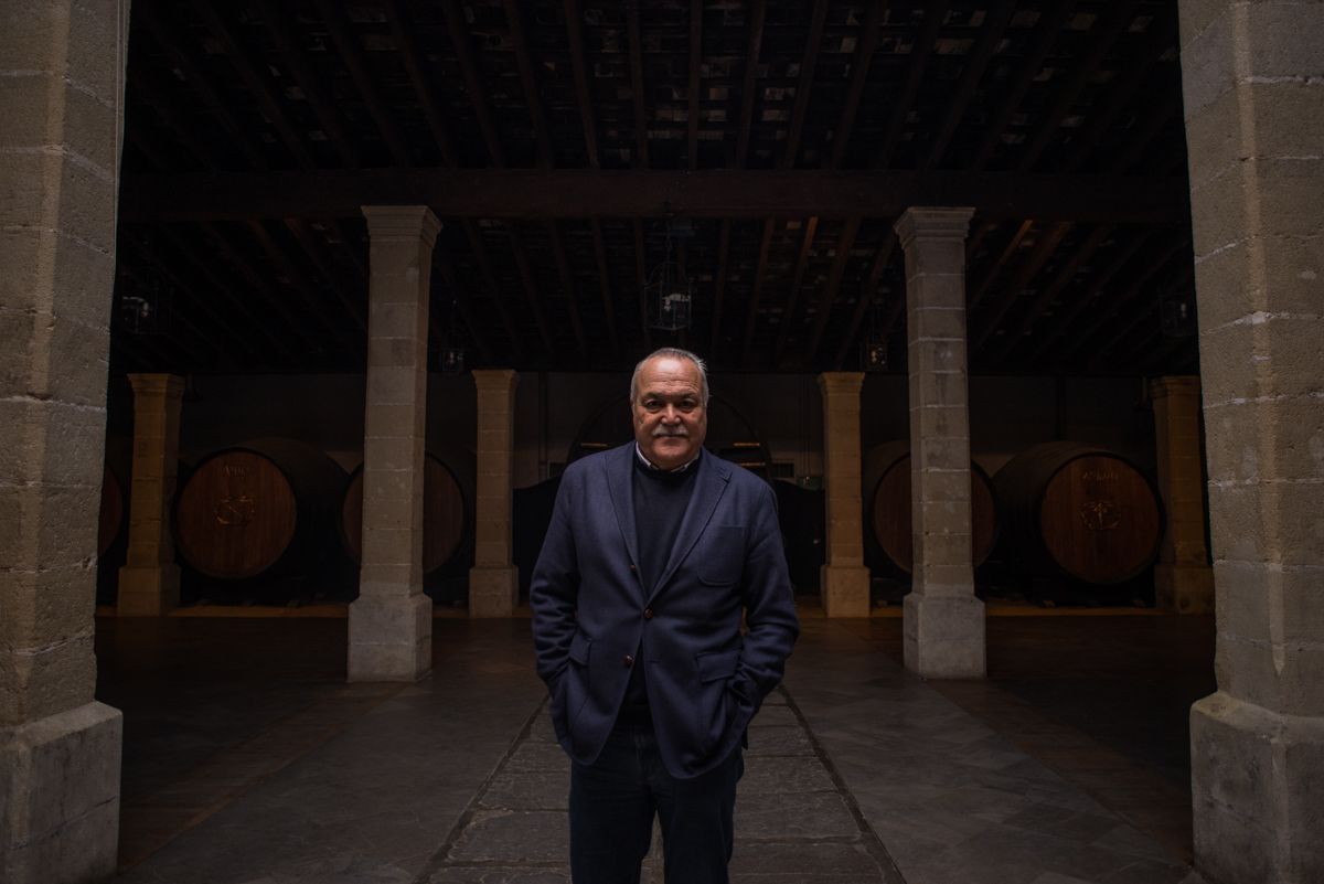 Paco Gandón posando en la sala de los apóstoles de González Byass. FOTO: MANU GARCÍA."Y una vez en bodegas, yo veía alli a los venenciadores, que entonces había 15 ó más —y a día de hoy estoy yo solo—. Los veía allí, que se iban a Alemania, a Turquía, Rusia... Y ese gusanillo me empezó a crecer, y claro, en la bodega, a ciertas horas, los viejecitos te decían: Niño, niño, una copita. Yo cogía mi venencia y lo echaba poquito a poco. Hasta que claro, un día todos los venenciadores estaban de viaje, y mi amigo, Domingo Alba —que ya falleció— me llama y me dice que le tengo que remplazar en Barcelona. Que yo no sé venenciar, que no, que no..., decía yo. Pero esa fue mi inauguración, en Barcelona", relata Gandón. "Todo lo que soy, entre otras cosas, se lo debo a mi amigo Domingo Alba", manifiesta.
