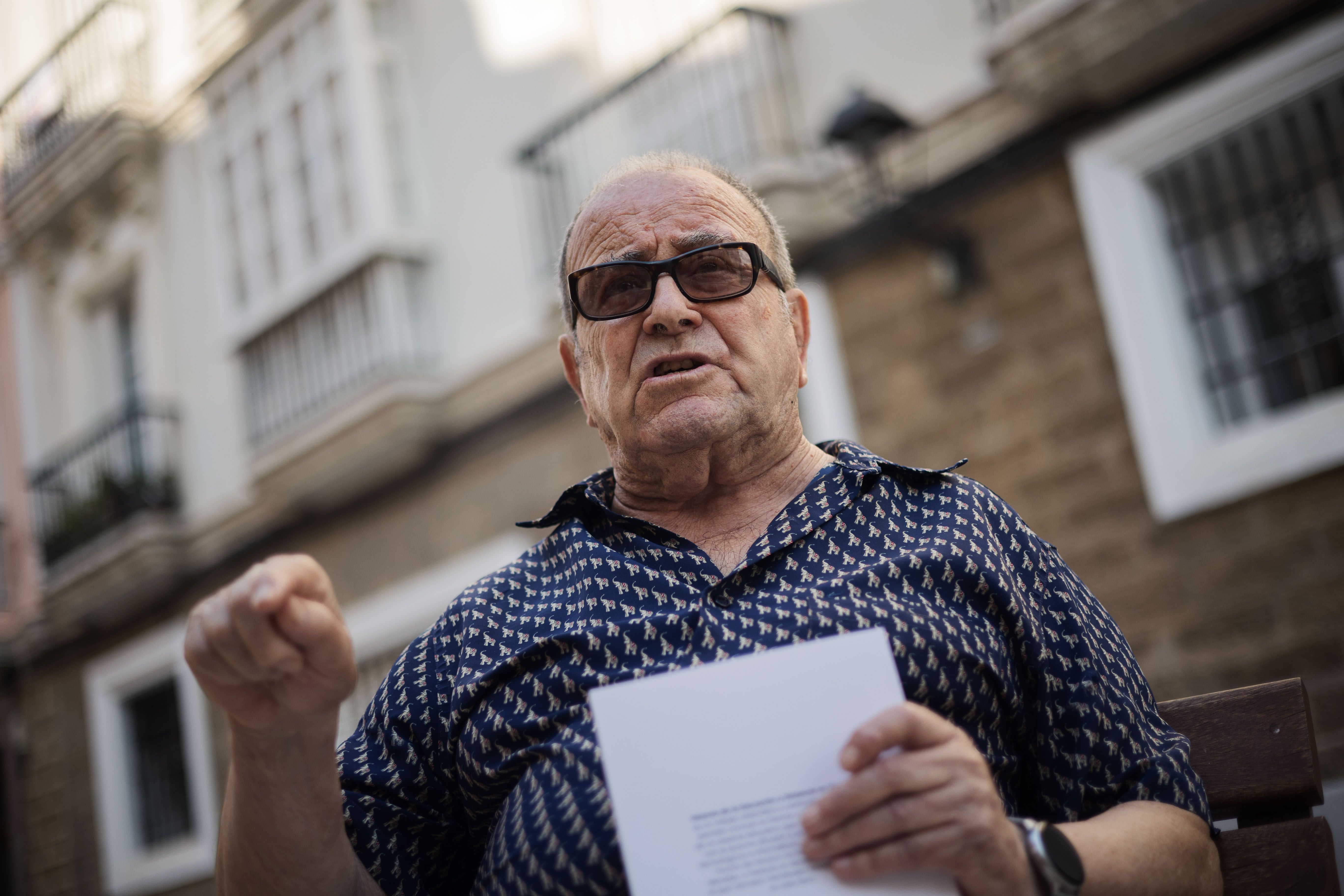 La plaza de España está en obras y llegar al antiguo Palacio de la Aduana cuesta. "¿Nos dejas entrar? Es para una fotografía, son del periódico", dice Gervasio Hernández Palomeque (Navalcán, Toledo, 1937) a un vigilante de seguridad que custodia la entrada del edificio de la Diputación de Cádiz. "No puedo, Gervasio, no puedo", le responde con cierta dosis de mansedumbre, esa docidilidad con la que las instituciones tratan a quienes gozaron de prestigio pero tienen que pasar igualmente por el aro de la burocracia. "Esto antes no era así, aquí entraba todo el mundo. Pero no es culpa suya, él es un trabajador más, ¿qué va a hacer?", se excusa mientras caminamos hacia los banquitos de la plaza Argüelles.
