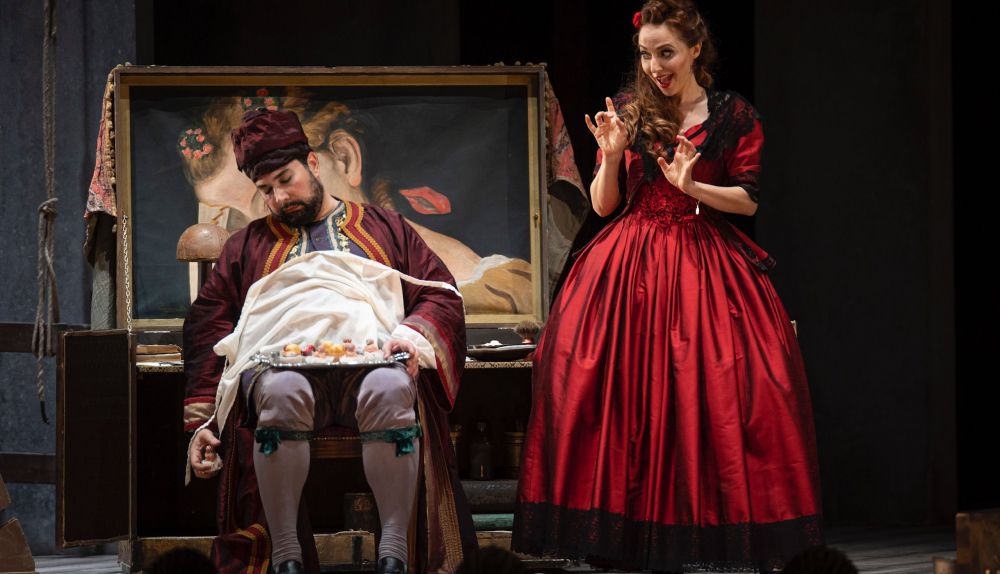 La producción de los Amigos Canarios de la Ópera, dirigida por Giulio Ciabatti (con Giovanna Lanza como ayudante de dirección y Carmen Guerra en la regiduría), es respetuosa con la concepción primigenia de la obra, jugando con referencias a la commedia dell’arte en el movimiento de los actores-cantantes. Dos fachadas renacentistas gemelas, enfrentadas a izquierda y derecha del escenario, flanqueaban un fondo de tramoyas escénicas con el que contrastaban. El atractivo visual se completaba con el acertado trabajo de Claudio Martín en el diseño de figurines, Josefa Castaño en la sastrería, María Orellana al frente del equipo de peluquería y maquillaje, y José Fernández en la iluminación.