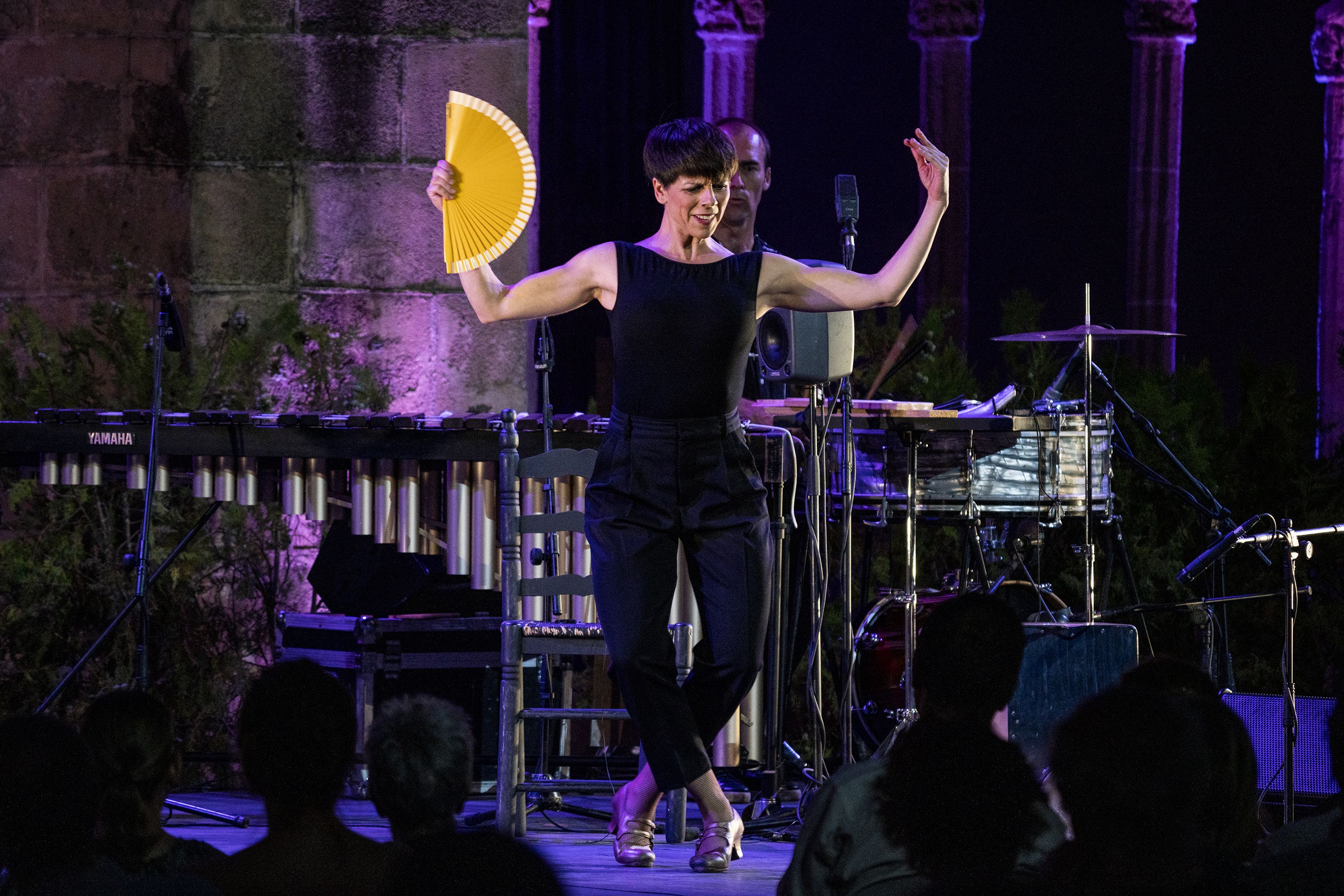 Al final, incluso una de sus invitadas, Leonor Leal, la exquisitez y la elegancia hechas bailaora, ofrece una clase magistral explicando a viva voz todos y cada uno de sus movimientos: “Uno, dos, tres… esto hay que rematarlo”. Con abanico mostaza que baila a las sombras; con ángel, que desarma por sus formas y su arrojo. El clavircordio de Alejandro Rojas-Marcos podría ser la sonanta de Ramón Montoya en un viejo disco de pizarra. La textura del sonido que ofrece esta exploración tan original se empasta con la voz de Lagos por malagueña de La Trini —versionadas luego por el pope jerezano del cante Antonio Chacón— o, más tarde, por seguiriyas.