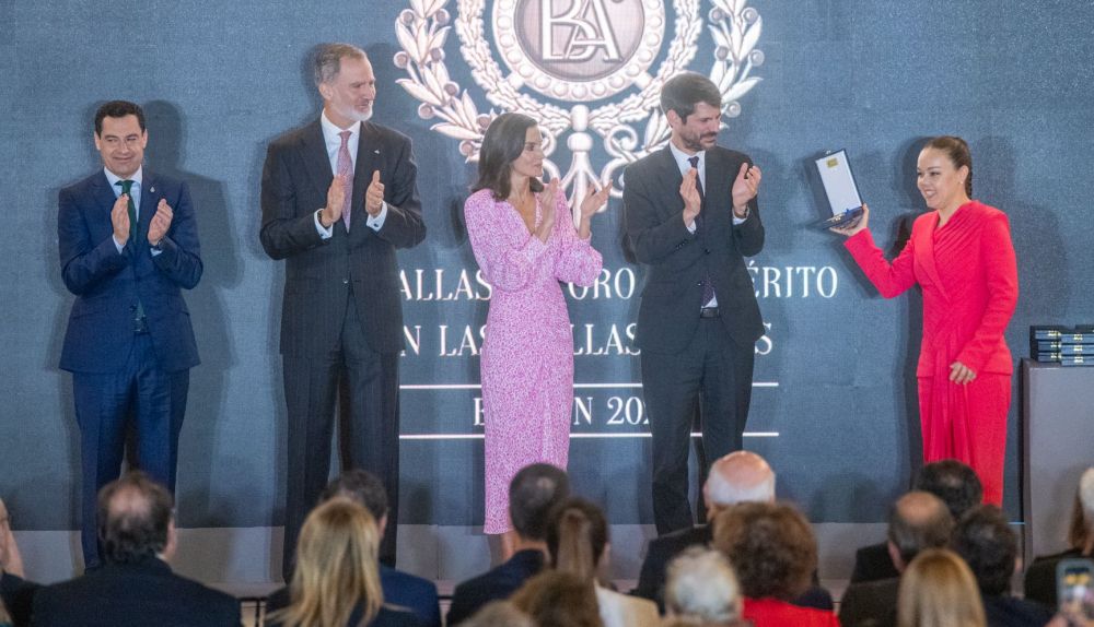 En una gala celebrada en el Palacio de Congresos de Cádiz, se han entregado las 32 Medallas de Oro al Mérito en las Bellas Artes, donde los galardonados han recibido este reconocimiento de manos de autoridades como los reyes, y representantes políticos, como el ministro de Cultura, Ernest Urtasun, el presidente de la Junta de Andalucía, Juanma Moreno, y el alcalde de Cádiz, Bruno García.