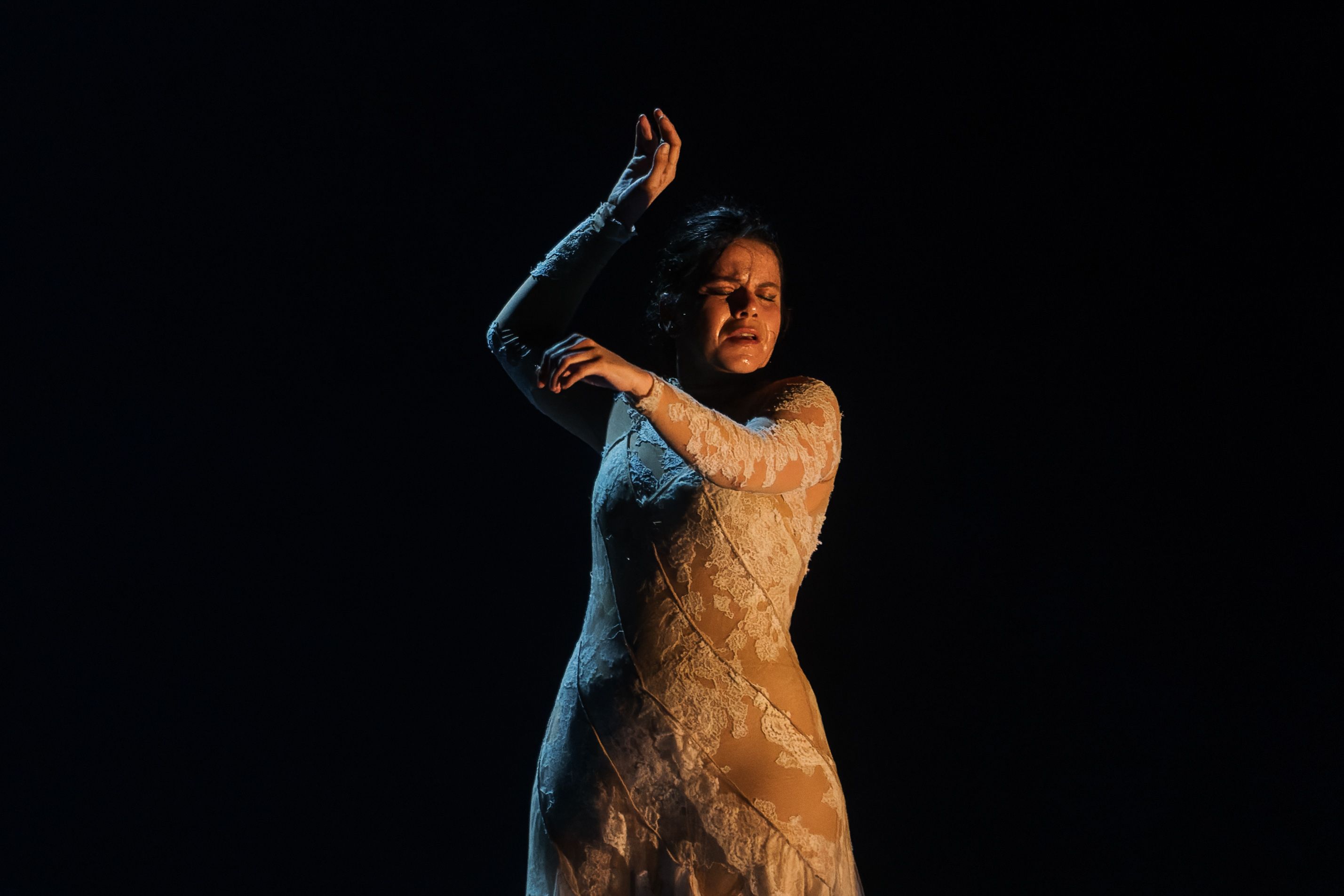 Vamos a hablar de Toledano, tan protagonista de las transiciones y de hacer crecer y evolucionar un espectáculo que empieza frío y oscuro. Esta jiennense deja un registro y una coloratura sorprendentes, y brinda un tour de force con Moreno sencillamente épico y punzante. Y cuando forma un corazón acercándose a la bailaora, juntas crean belleza. Toledano tiene la redondez de una joven Carmen Linares, el terciopelo de Mayte Martín y el agudo al filo de lo imposible de una soprano, pero además, su voz es antigua y fresca a la vez, con todo el peso de la historia mestiza de lo flamenco. Y todo eso, con 27 años. Cantando por soleá o cerrando la pieza, redonda, compacta, emocionante, con el Lacrimosa. Queremos más.