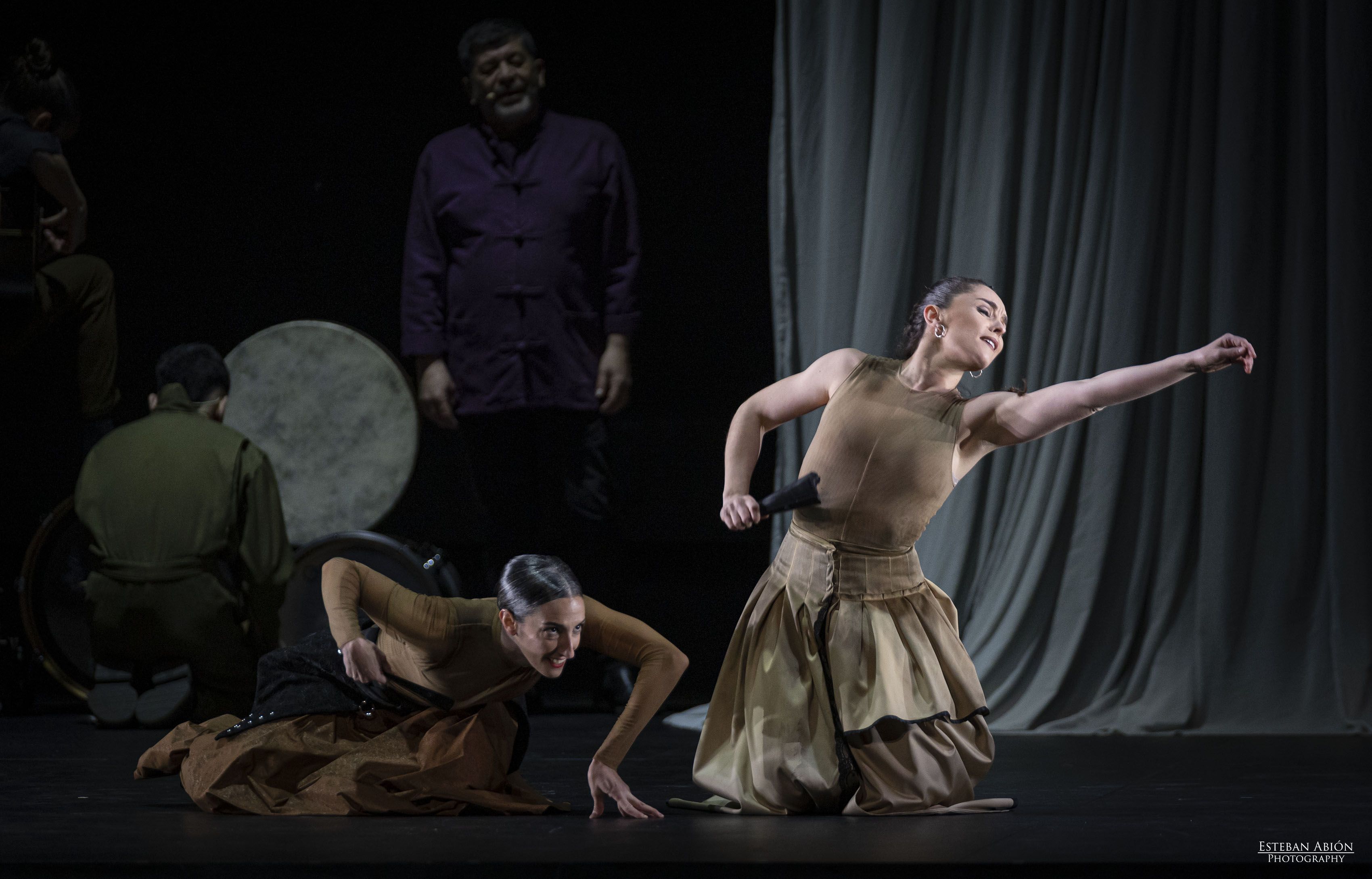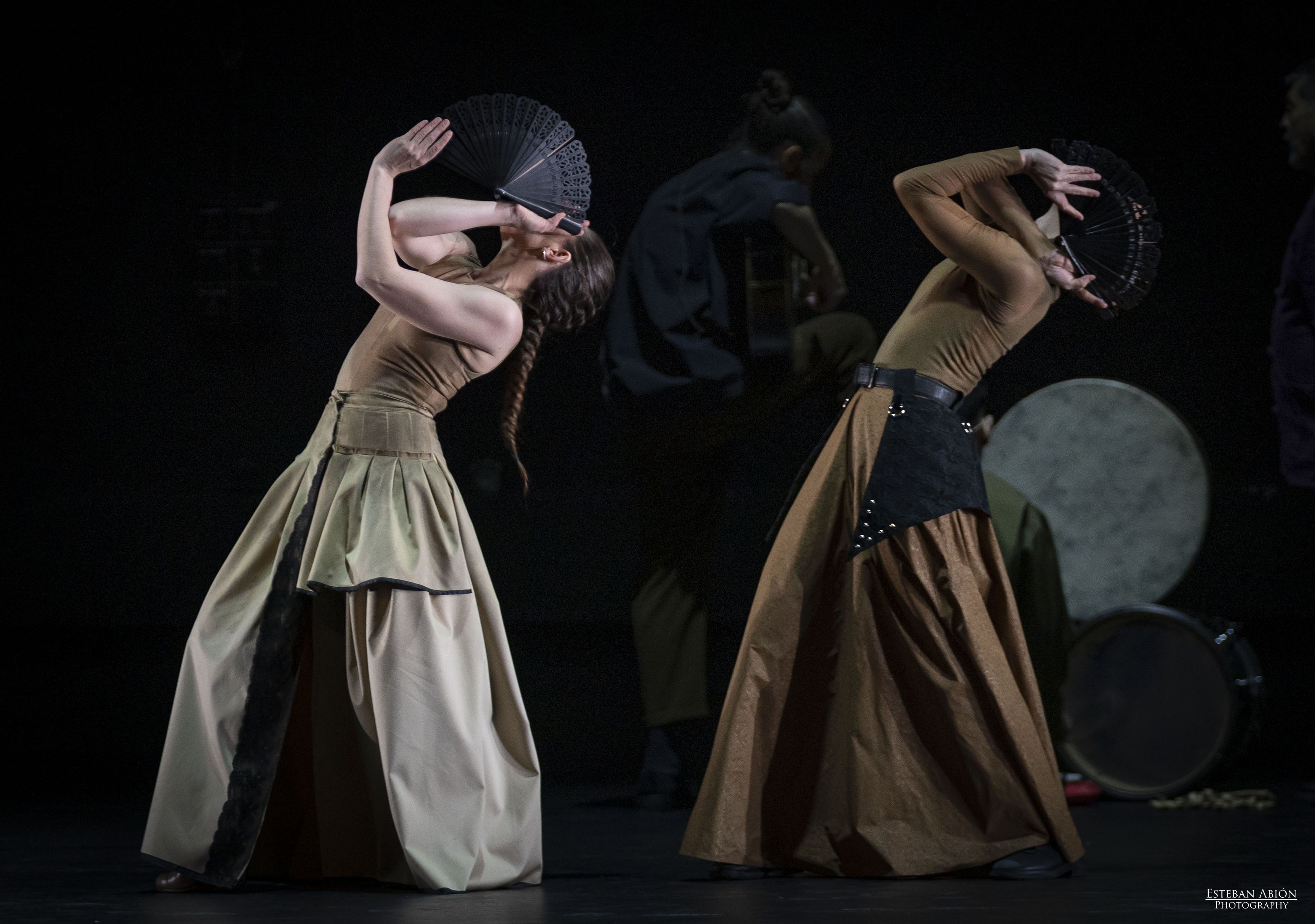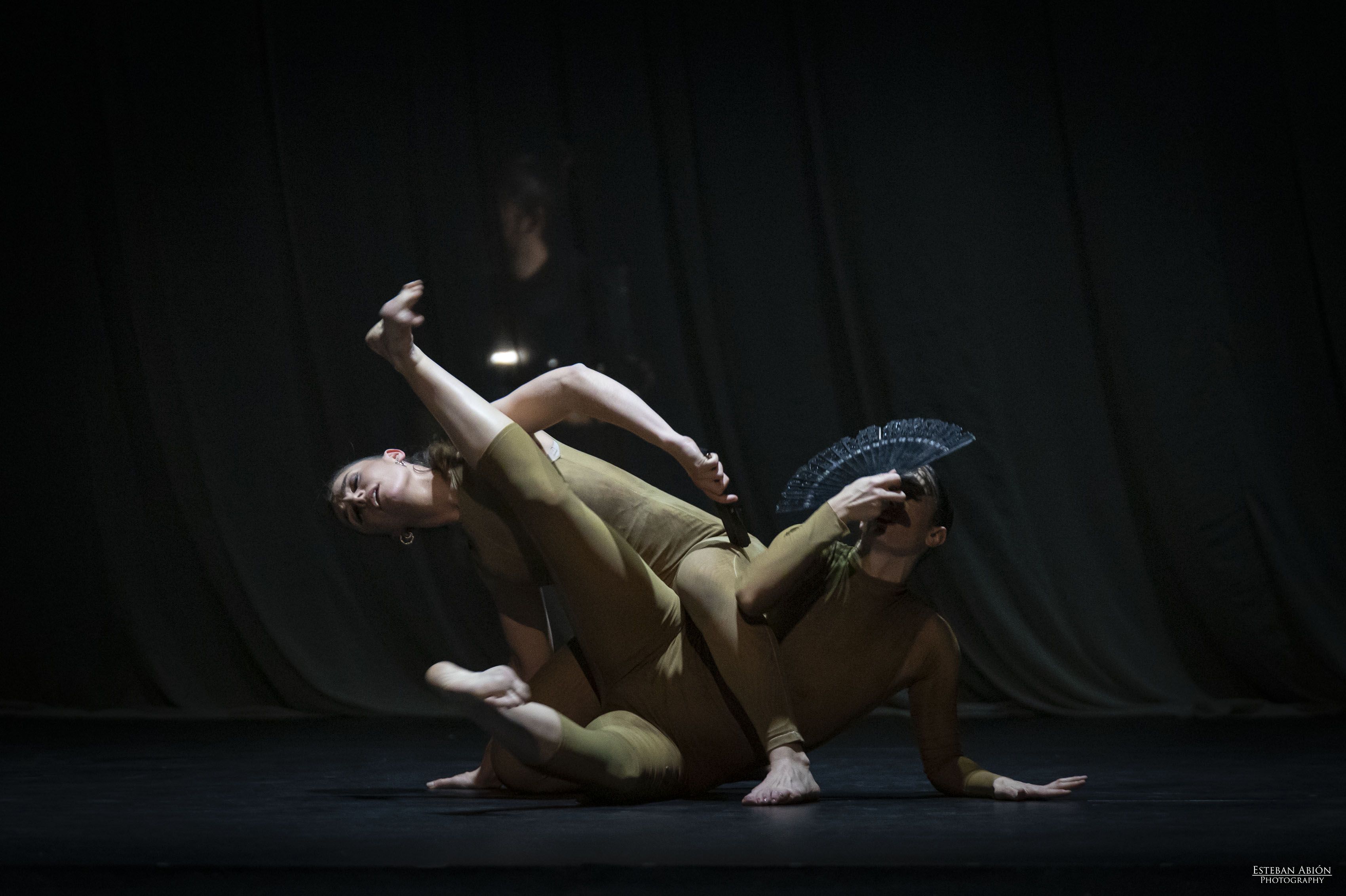 El incesante aleteo del abanico negro es un insecto que revoletea por todo el territorio del escenario. Ese inicio me ha recordado a aquel episodio metafísico tan famoso de Breaking bad —muchos dejaron a partir de aquí de ver la serie— en el que una mosca servía de alegoría para simbolizar todos esos pensamientos que atormentaban a los personajes de la trama. La luz cruda de quirófano ilumina el telón que ordena la escena. En el espacio vacío de la tabla aparecen dos partículas bailaoras, positiva y negativa, que como en la física cuántica, parecen destruirse si se tocan.