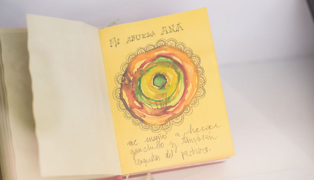 Como se aprecia en sus infinitas plantas, florecillas, tallos, estandartes que pueblan su desperdigada obra representada desde el cabecero reciclado de su propia cama hasta llegar a esos libros de artista que ella fue creando en su última etapa. Como el llamado Libro Dorado que le dedica a su abuela Ana, quien le enseñó a hacer ganchillo y croquetas de puchero, o esos otros libros más penumbrosos como el Libro Rojo o el Libro Negro con que Bella llegó a transformar un manual de química prestado en una auténtica joya (esos peces como vida de sus paisanos isleños) que se expone en la muestra.