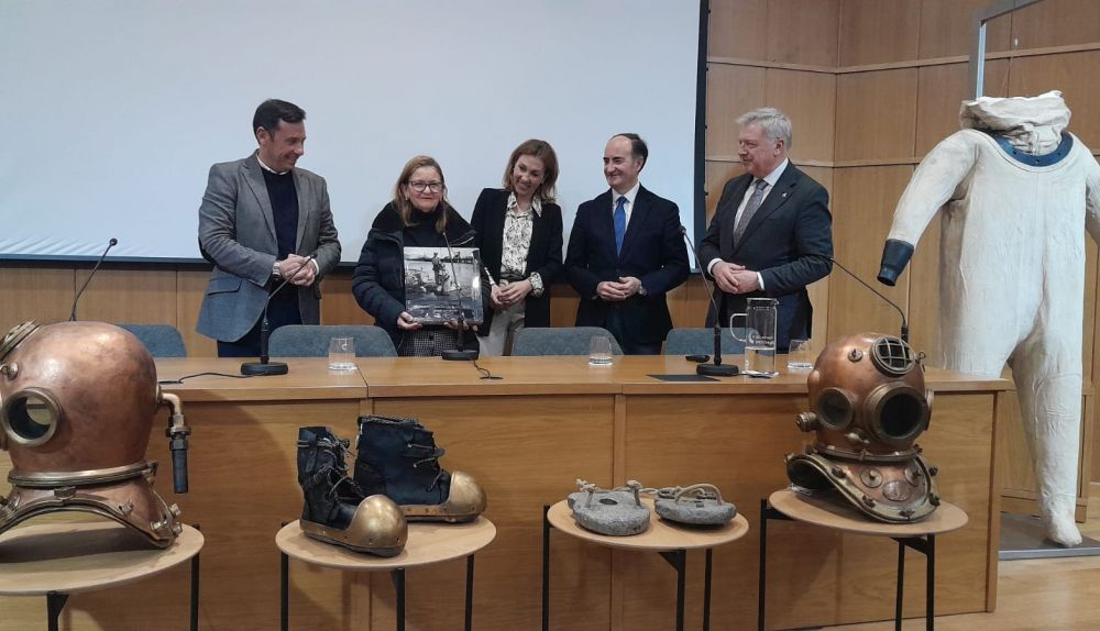 El Instituto Andaluz del Patrimonio Histórico, dependiente de la Consejería de Cultura y Deporte, ha dado a conocer los resultados de la restauración de un traje clásico de buzo de la primera mitad del siglo XX, propiedad de la Autoridad Portuaria de la Bahía de Algeciras. A la conferencia de presentación han asistido el subdelegado del Gobierno en el Campo de Gibraltar, Javier Ros, la delegada territorial de Turismo, Cultura y Deporte, Tania Barcelona, el presidente de la APBA, Gerardo Landaluce, y el director general del IAPH, Juan José Primo, además de los concejales de Algeciras Juana Cid, Ángel Martínez y Patricia Bueno.