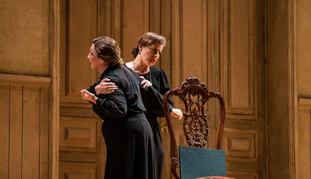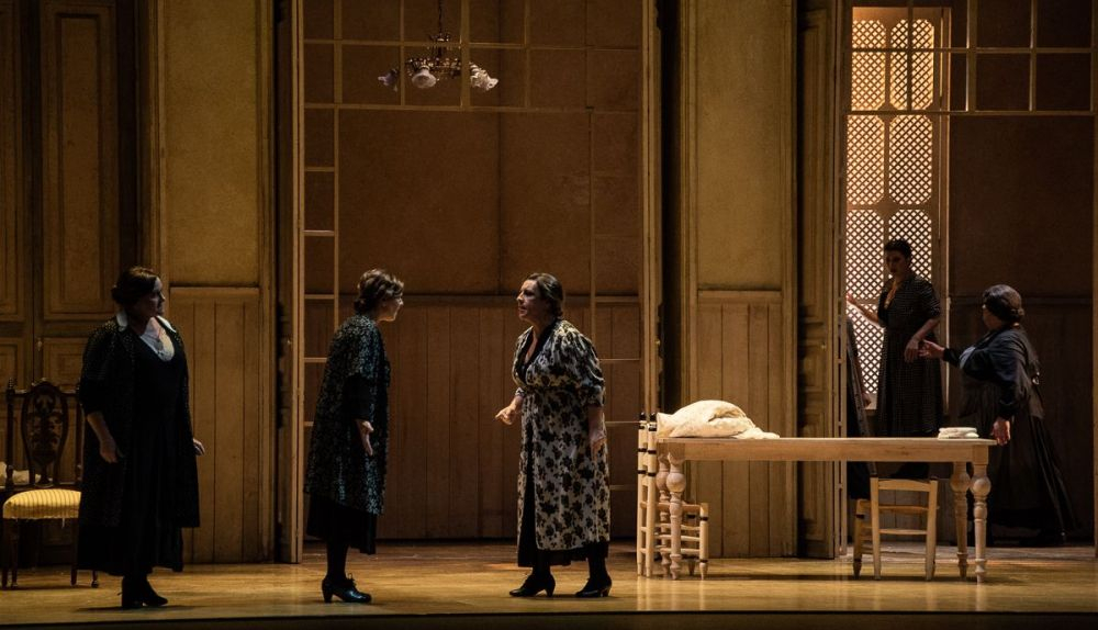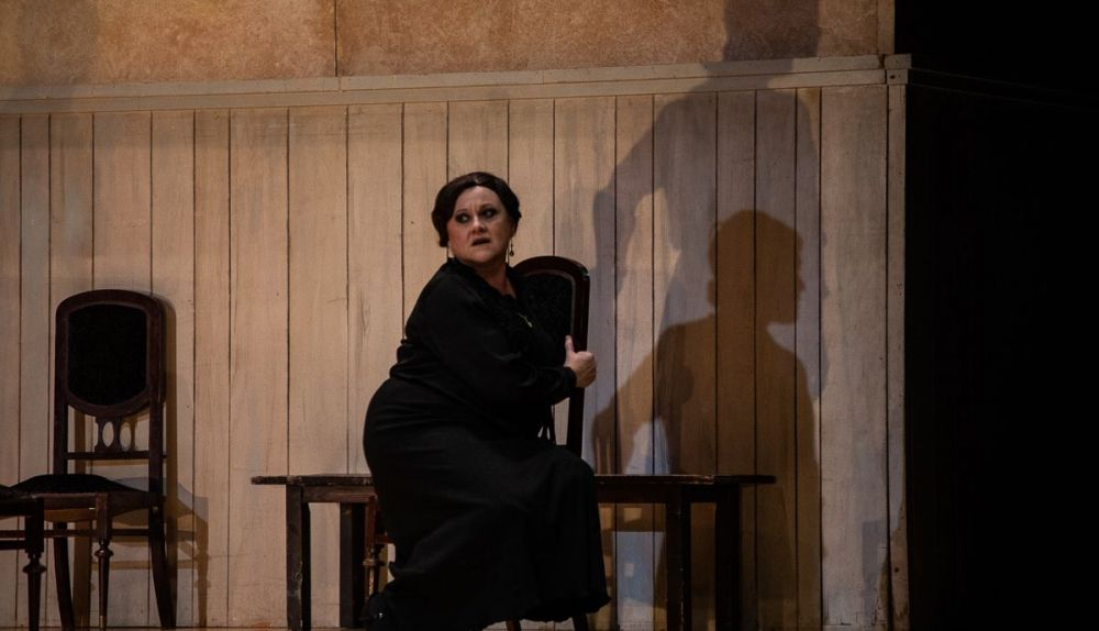 La Casa de Bernarda Alba, de Miquel Ortega (música) y Julio Ramos (libreto basado en Federico García Lorca). Teatro Villamarta, 2 de octubre de 2021. Aforo: Tres cuartos de entrada. Ana Ibarra (Bernarda Alba), Carmen Romeu (Adela), Luis Cansino (criada Poncia), Maribel Ortega (Martirio), Marifé Nogales (Amelia), Belén Elvira (Magdalena), Berna Perles (Angustias), Helena Dueñas (María Josefa), María Ogueta (criada). Orquesta de Cámara de la Sinfónica de Málaga. Miquel Ortega (dirección musical). Coro del Teatro Villamarta (dirección: José Ramón Hernández Bellido y Ana Belén Ortega Vilches). Producción del Teatro Villamarta en colaboración con el Teatro Cervantes de Málaga y el Festival de Música Española de Cádiz. Javier Hernández (dirección de escena), Jesús Ruiz (escenografía y figurines), Francisco López (iluminación).