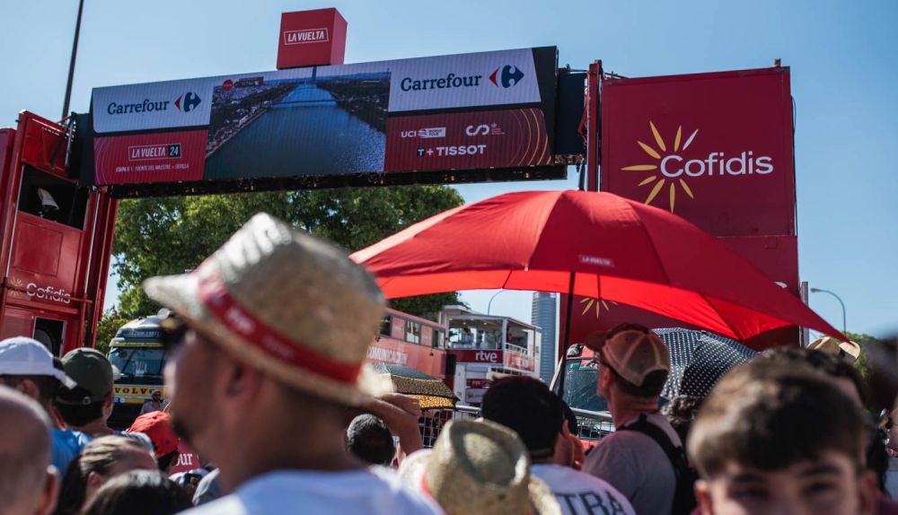 La razón obvia es el calor, que ha marcado la jornada en la ciudad. El ciclismo, como el fútbol, tiene adeptos presenciales, pero donde rompe los esquemas es en la tele. Ahí sí. Buena parte de España ha visto la llegada de La Vuelta a Sevilla en una etapa llana con premios al sprint, con puntos en el intermedio de La Algaba.