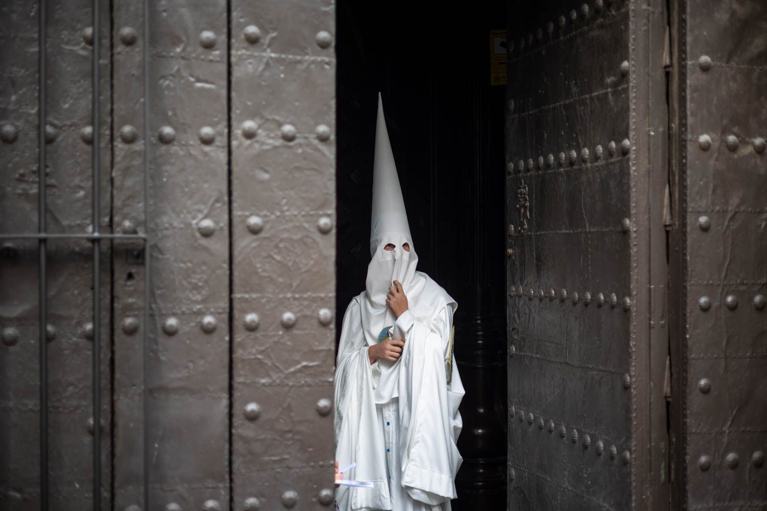 Un penitente a primera hora, esperando la llegada de sus hermanos