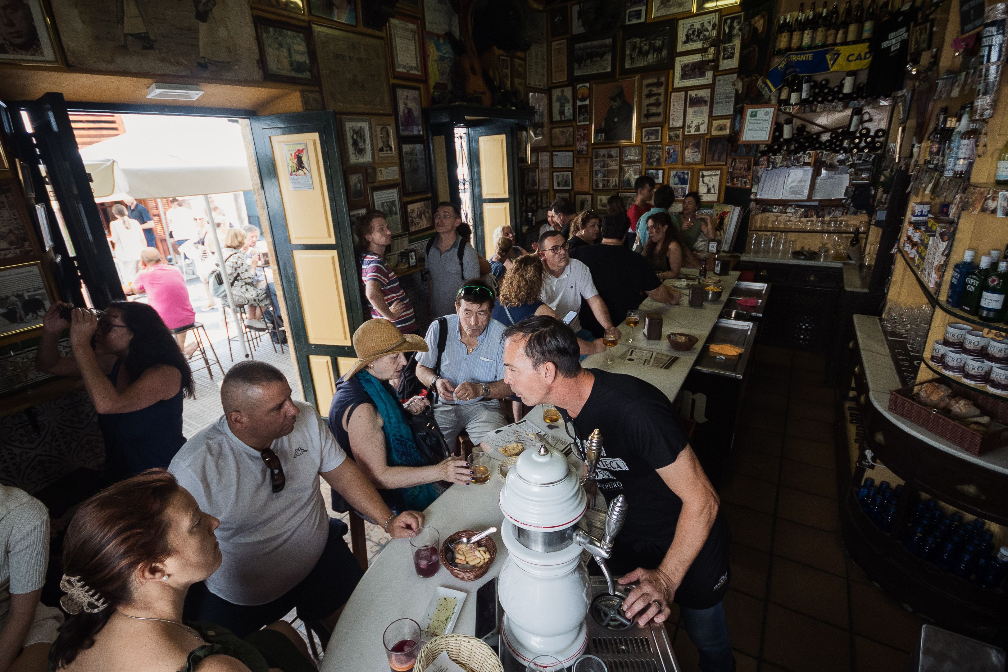 Él y su hermano Pepe, de 56 años, celebran el aniversario de esta taberna grabada en la idiosincrasia de la ciudad que abrió en 1953 un montañés. Su abuelo, Lorenzo Ruiz Manteca, tan solo tenía ocho años cuando viajó desde Tesanilla, en el Valle de Pas, Cantabria, hasta el sur. “Entró a trabajar de chicuco y poco a poco fue cogiendo las riendas del negocio... se divertía, pero lo justito”, recuerda su nieto Tomás, tercera generación.