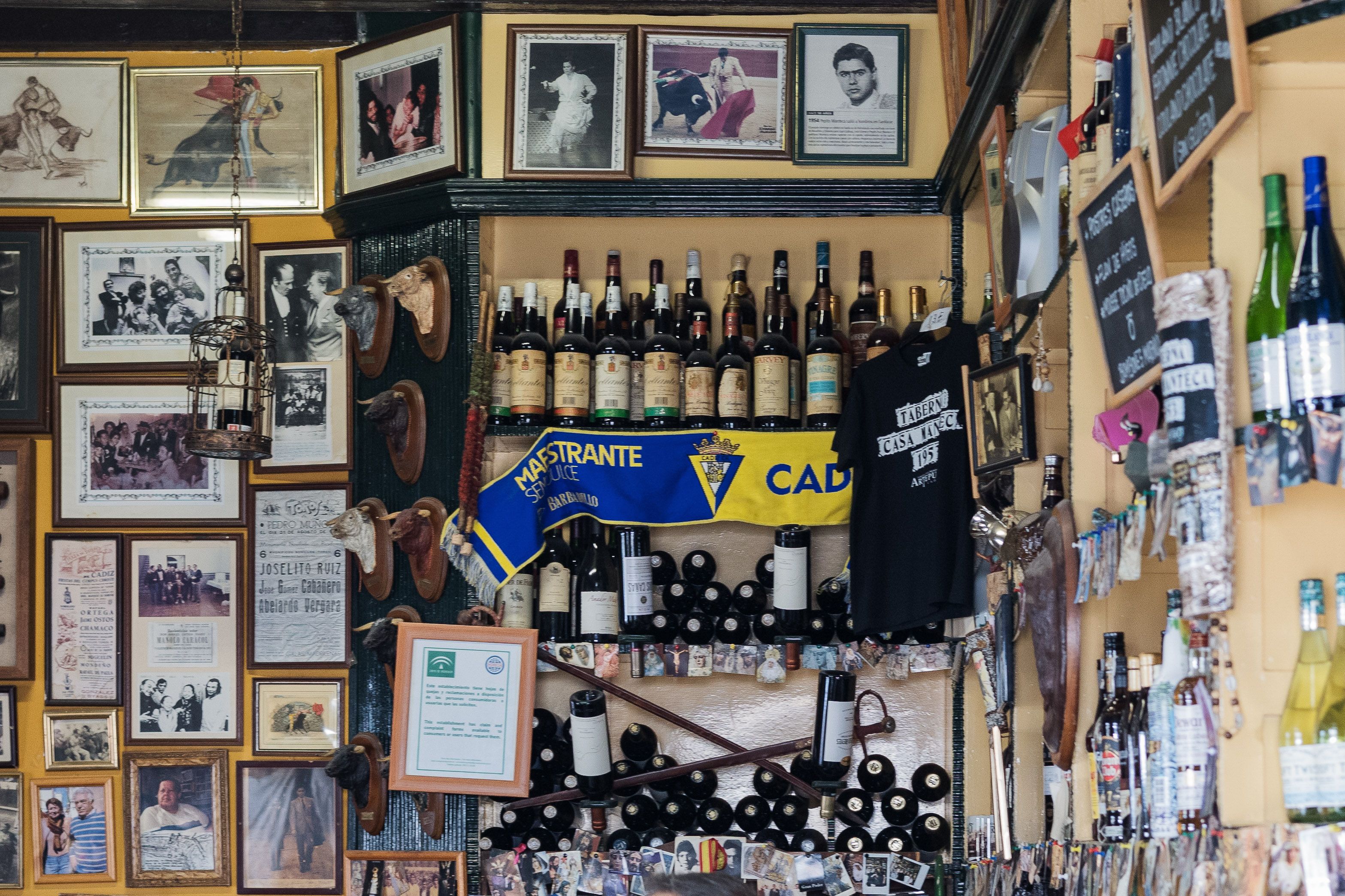 La imponente cabeza de un toro vigila un plato de mojama. Ha sido testigo de juergas flamencas, conversaciones sobre la vida y sorbos de vino en pleno barrio de la Viña. Allí, con la piedra ostionera presente, nació hace 70 años Casa Manteca, negocio histórico gaditano cuyas paredes cuentan historias y rememoran encuentros entre cantaores y toreros. “Esto es lo que le apasionaba a mi padre” dice Tomás Ruiz, de 52 años, que tantas veces ha cruzado la puerta del local. A su alrededor hay carteles de corridas y cuadros, muchos cuadros, tantos que apenas se ven los muros.