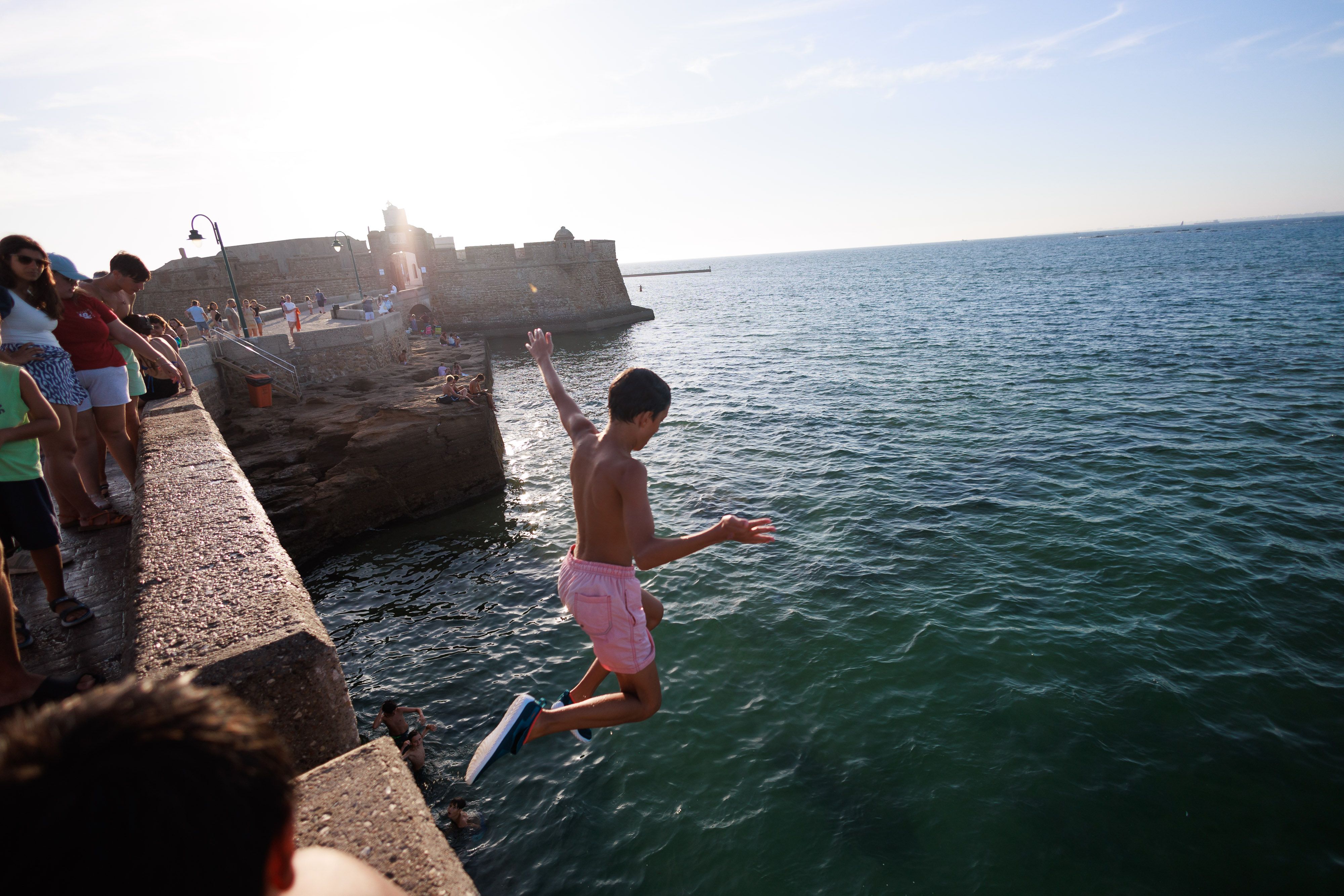 El castillo de San Sebastián abre de nuevo sus puertas al público al atardecer de este 12 de agosto con un jolgorio inocente, como sacado de una película de Fellini. Ni los niños tirándose del Puente Canal faltan al retablo ritual. Ha estado cerrado desde el tormentoso invierno de 2018.