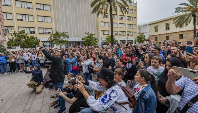 Cientos de gaditanos han estado acompañando a Silvio, el hijo del poeta carnavalero, y a Luisa, su mujer, en este emotivo recuerdo que ha tenido, entre sus momentos estelares, la emotiva interpretación del Credo de Los Peregrinos a las puertas del Falla y del cielo.