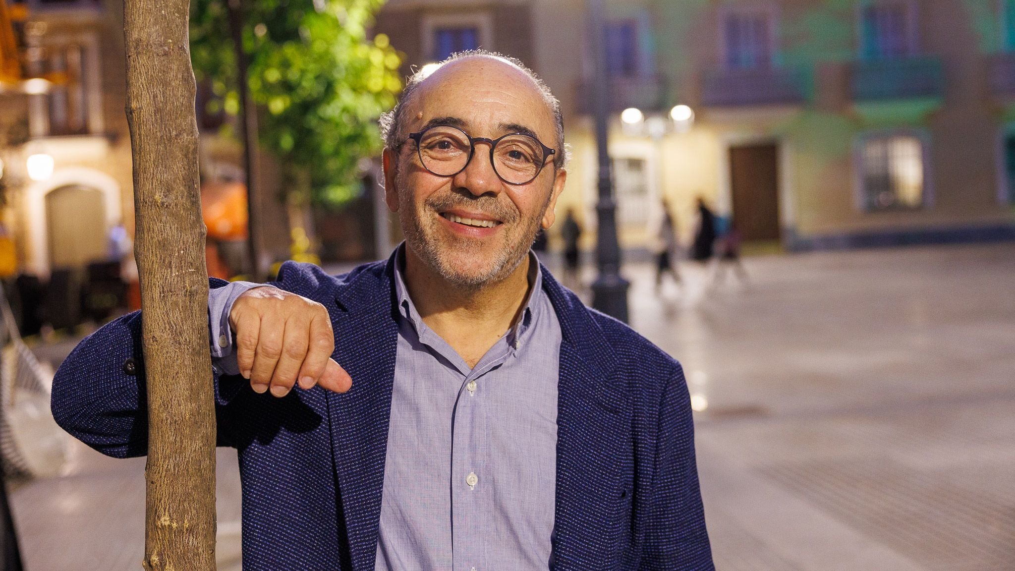 Emilio Morenatti camina con calma por Ancha, en Cádiz. La primera luz solar del invierno inminente le recorta una sombra elegante. La iluminación siempre cuenta cuando se habla de fotografía y él la representa como pocos en España.