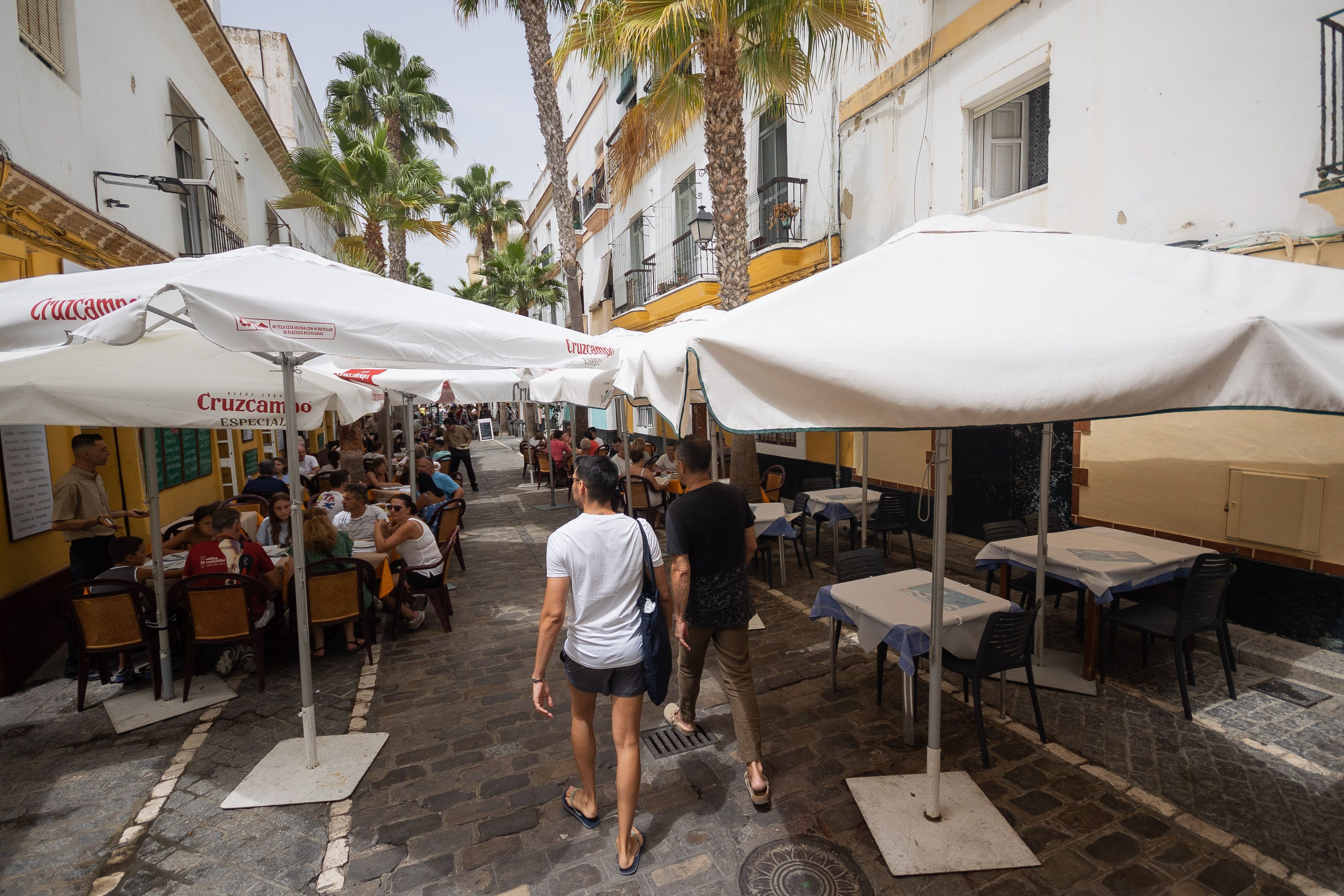 Una de las asociaciones de vecinos con más trayectoria del casco antiguo de Cádiz, Asociación Cádiz Centro, ya no aguanta más. Las quejas de residentes en la calle Virgen de La Palma de La Viña sobre el excesivo espacio que ocupan las terrazas de bares y restaurantes, con las molestias diarias que supone y la hipotética peligrosidad en caso de emergencia, han sido la espoleta para que este colectivo levante la voz y manifieste su hartazgo.