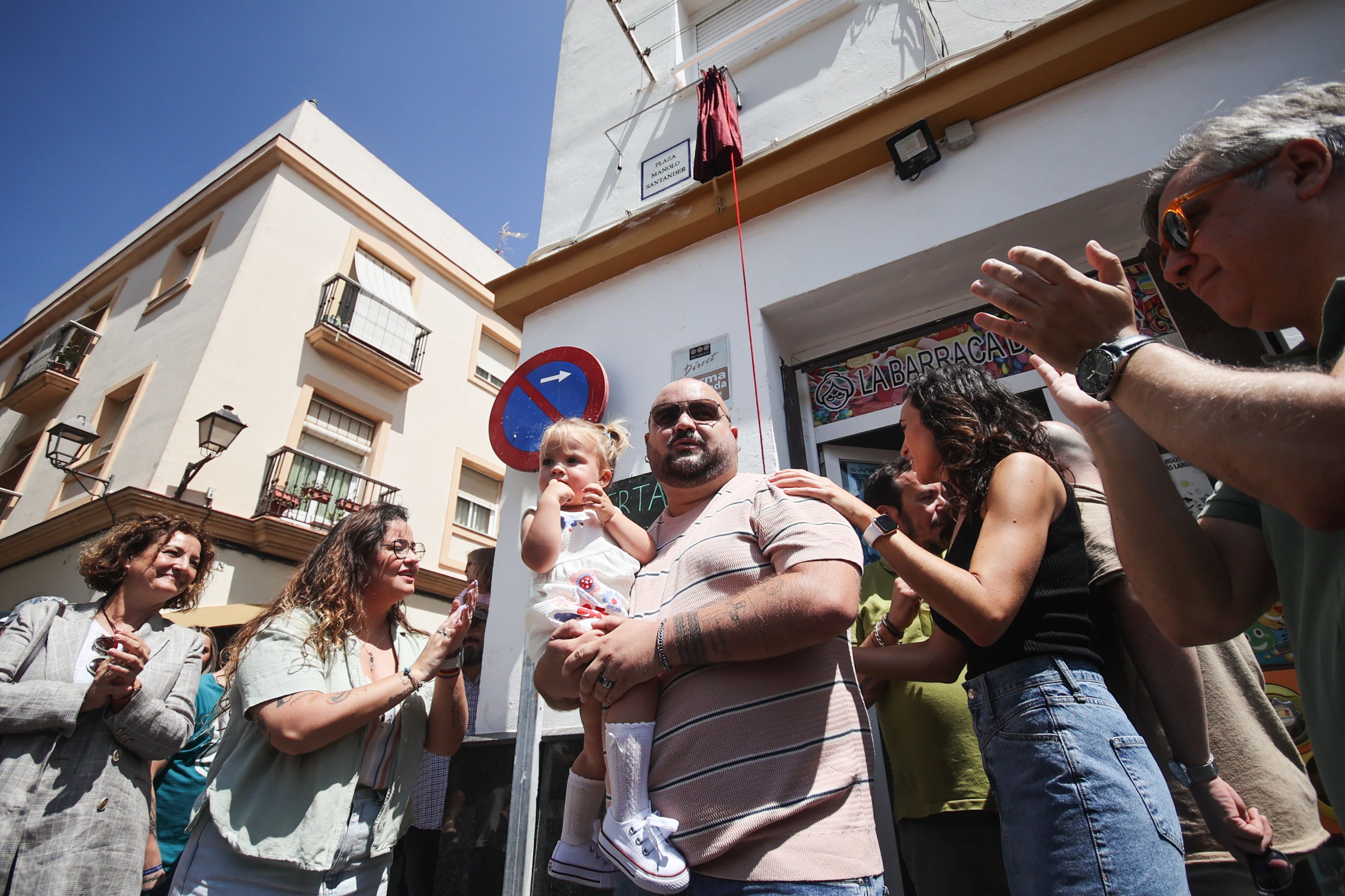 Los clientes y turistas que iban el pasado jueves a tomar el aperitivo o encargar un pollo al Bar Nuestro de Cada Día de Cádiz, contiguo al freidor La Coñeta —ambos en la muy viñera calle de La Rosa—, se encontraban una escena particular el primer jueves de junio.