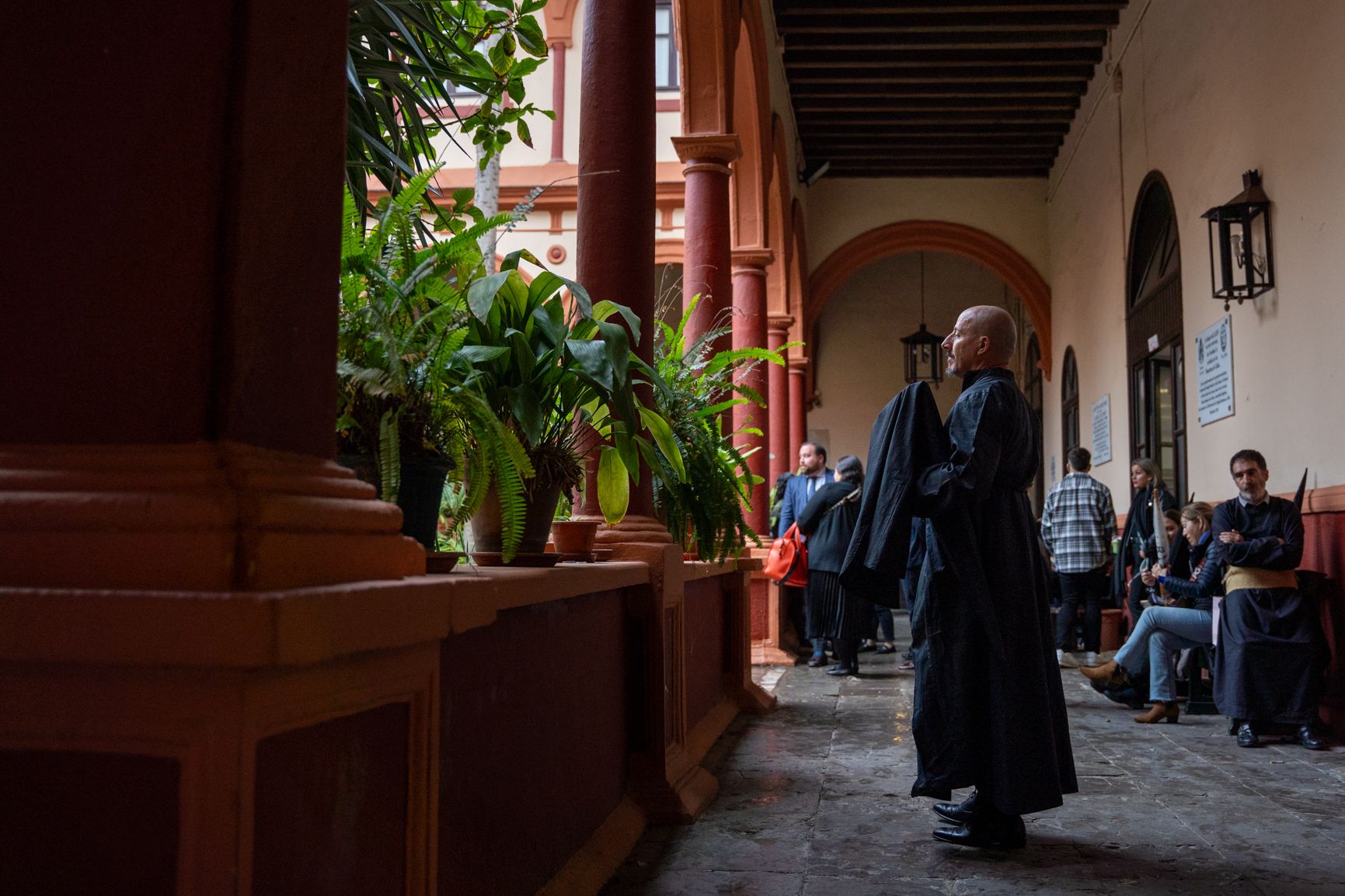 Lleva casi una hora sentada, como toda la calle, como otro centenar largo de vecinos. Dentro del templo se procede a la lectura de la sentencia. Pedro Bueno, hermano mayor, dice con gesto contenido que no habrá estación de penitencia.