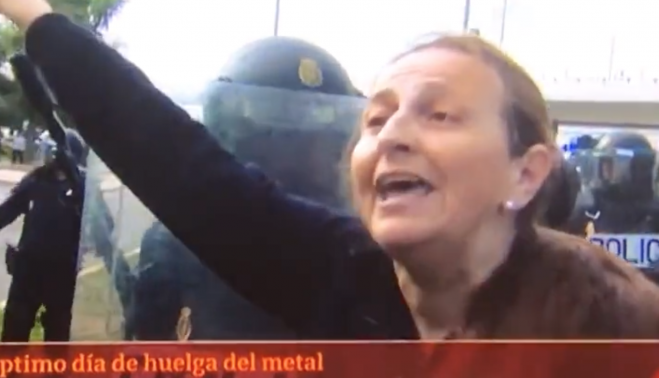 Durante los días de huelga del metal en Cádiz una mujer se enfrentó con la palabra a los antidisturbios que entraron acompañados de una tanqueta a la barriada del Río San Pedro en Puerto Real. "Si es necesario, que arda Troya, porque esto hay que defenderlo con uñas y dientes", comenzaba Raquel, con una barrera de Policías Nacionales a sus espaldas. El próximo 16 de febrero está citada por el Juzgado de Instrucción Nº 3 de Cádiz.