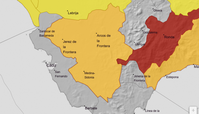 La Agencia Estatal de Meteorología ha decretado en la tarde de este lunes aviso naranja en la Campiña de Jerez. Así, pasa de aviso amarillo a naranja, un nivel más, debido a las precipitaciones que se esperan en las próximas horas.