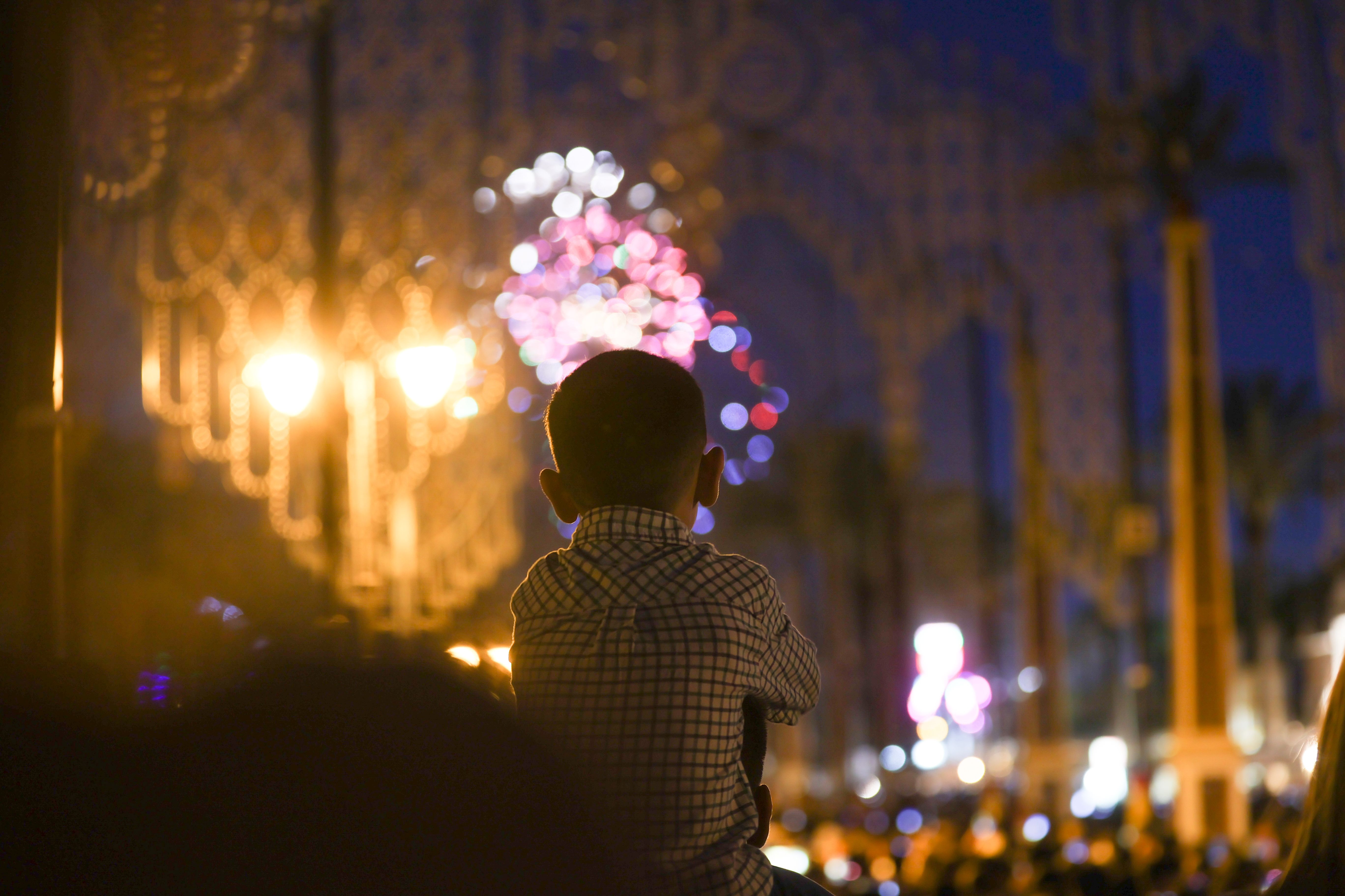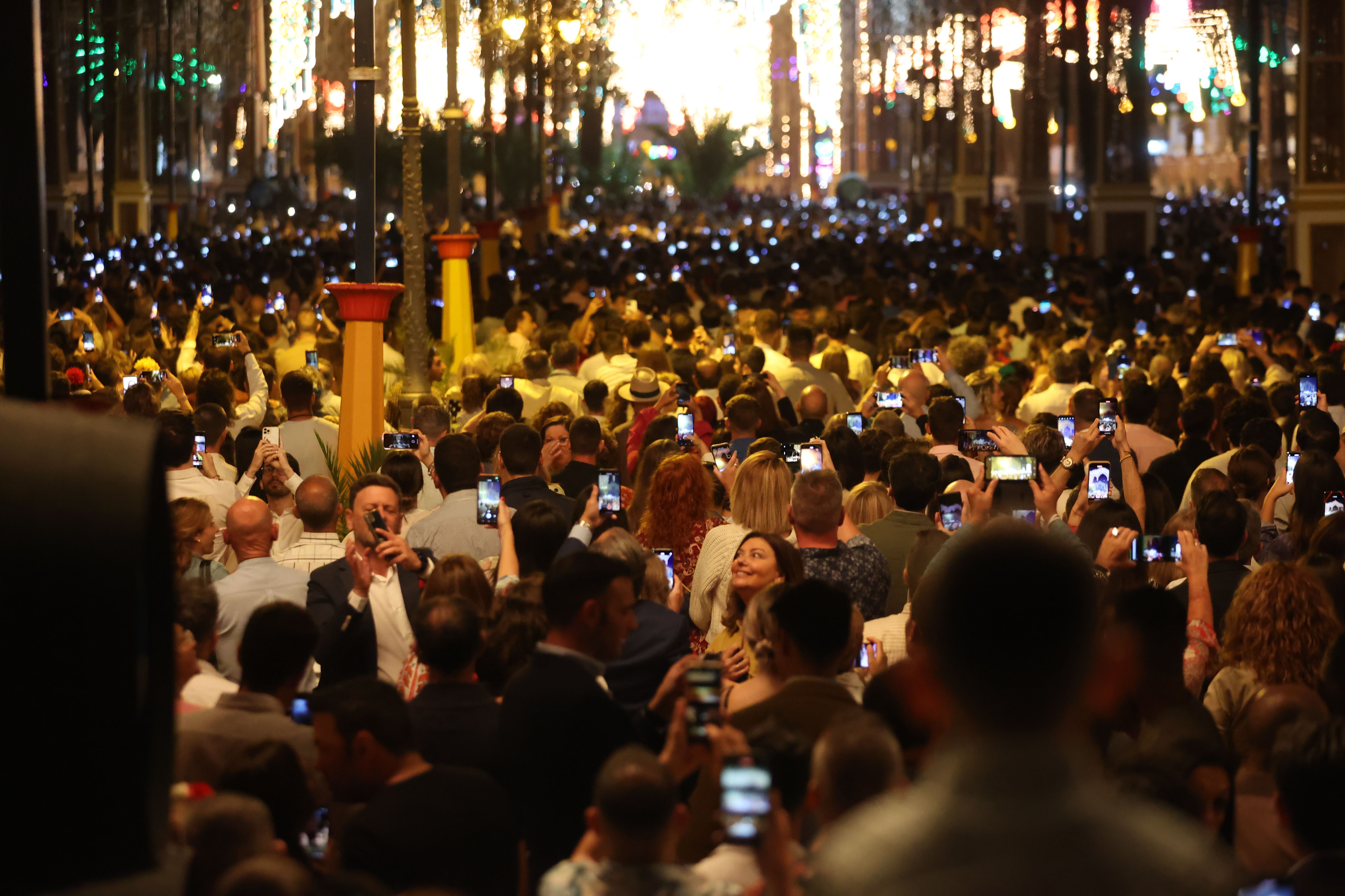 Móviles en mano y todas las miradas puestas en la iluminación ornamental que, un año más, da el pistoletazo de salida a la Feria del Caballo.