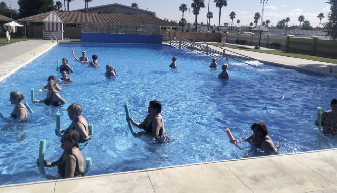 Durante los meses de verano y dentro del programa Mayores Activos, llevado a cabo por la delegación de Deportes del Ayuntamiento de Guadalcacín, las personas de la tercera edad están disfrutando de sesiones de aquagym en la piscina municipal, con diferentes actividades de gimnasia de mantenimiento.