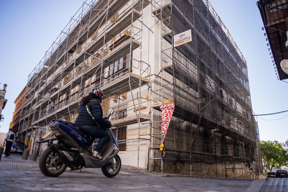 El Palacio de la Condesa de Casares en la Plaza de la Asunción, la antigua sucursal de Caja San Fernando en Conde Cañete del Pinar, el mítico edificio de El Gallo azul en la calle Larga o el antiguo local comercial de Rianal son solo algunos de los edificios que están en pleno proceso de obras y transformación en el centro histórico de Jerez. Tras muchos años de intenso letargo en el que las rehabilitaciones fueron casi mínimas, el intramuros parece vivir un despertar de la piedra y el cemento. Las maquinarias vuelven a funcionar y locales y edificios que llevaban años esperando a ser abiertos, por fin parecen prepararse para una nueva etapa.