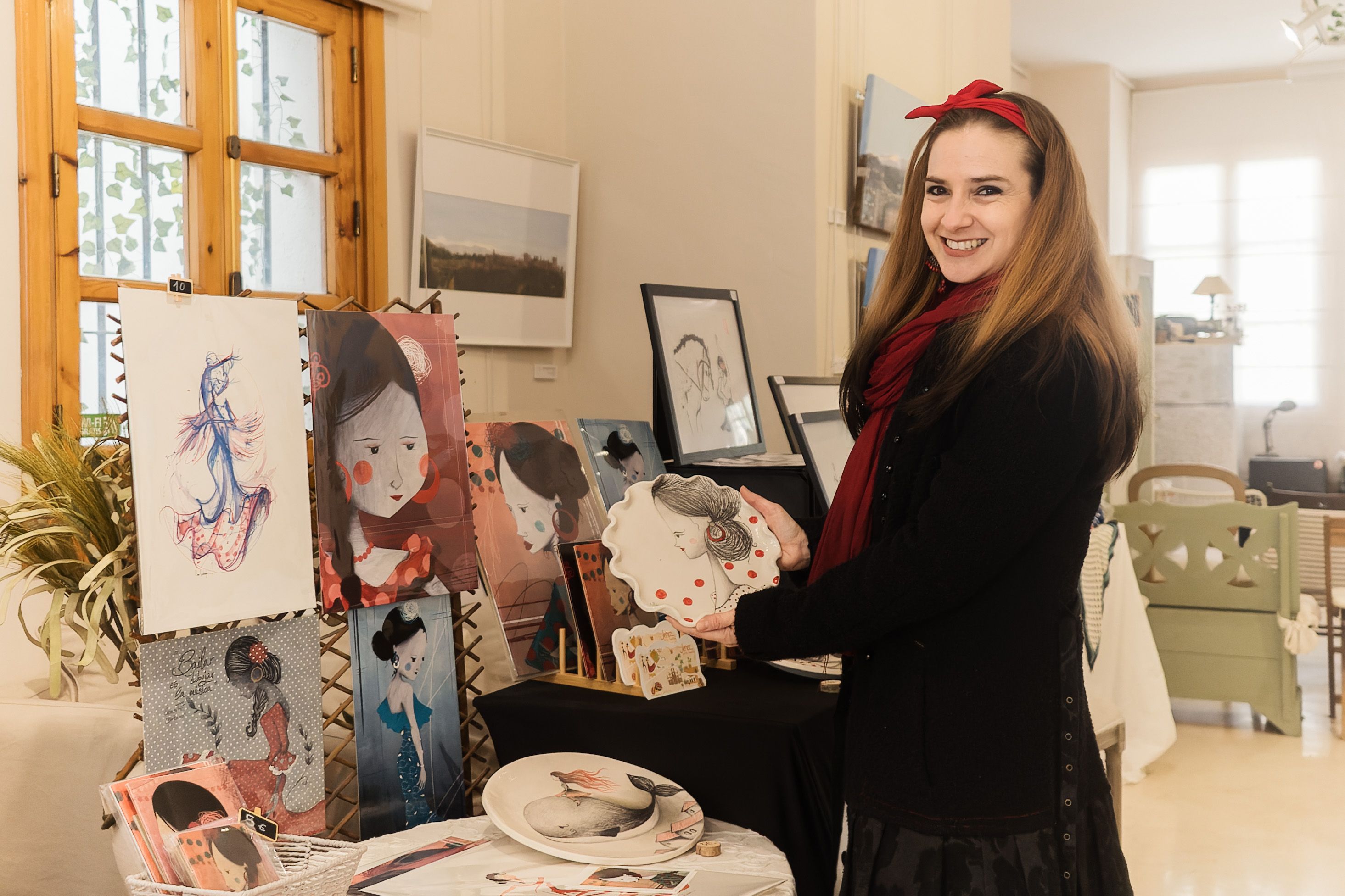 Para ella, un plato o una bandeja es un buen soporte para darle rienda suelta a la imaginación y crear una serie de flamencas o de monstruitos. A su trabajo se suma el de las ilustradoras Selenne Nore Art y Mayka Peñalver. Una de las obras de esta última conforma el cartel de este encuentro donde rebosan las piezas únicas hechas con cariño.