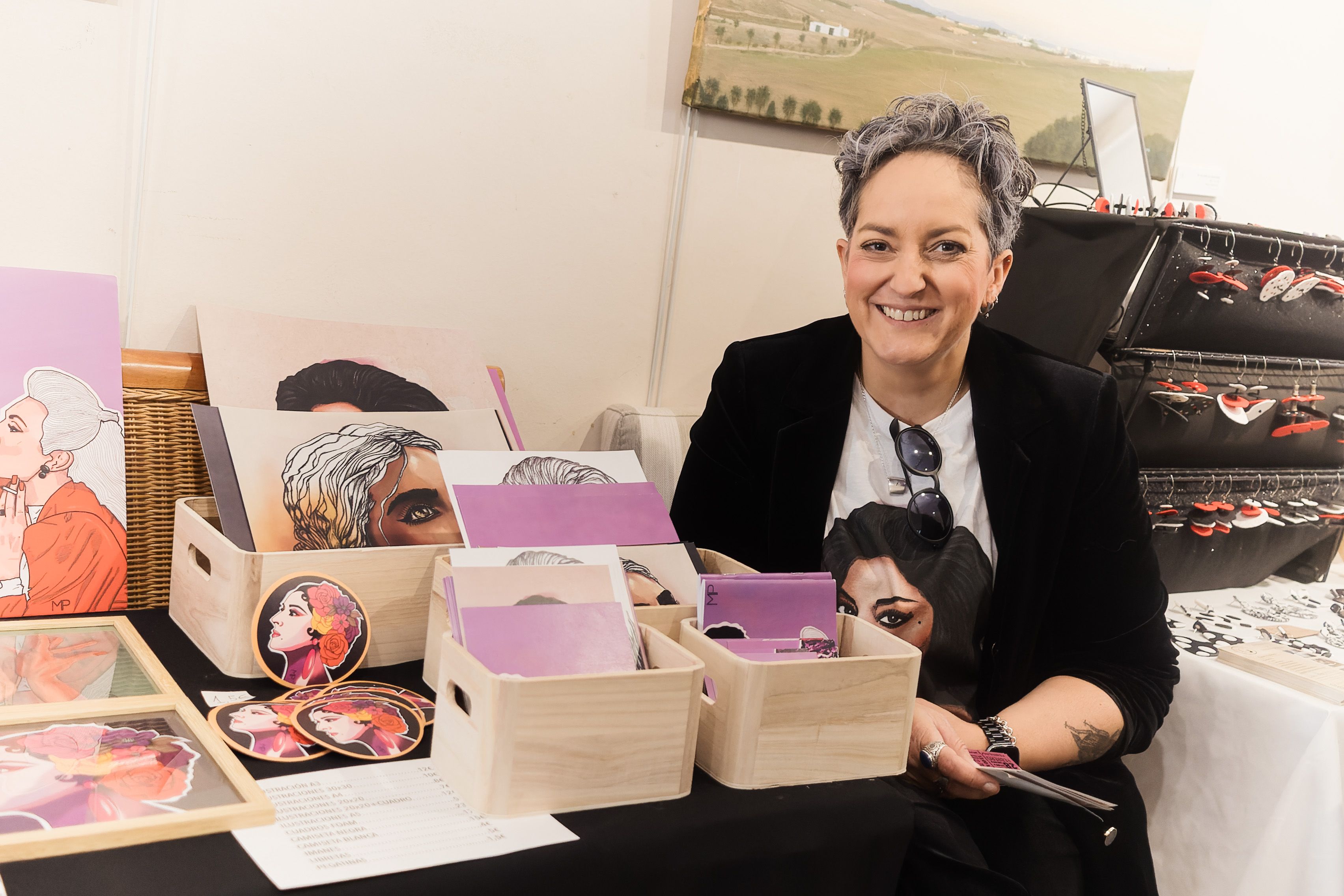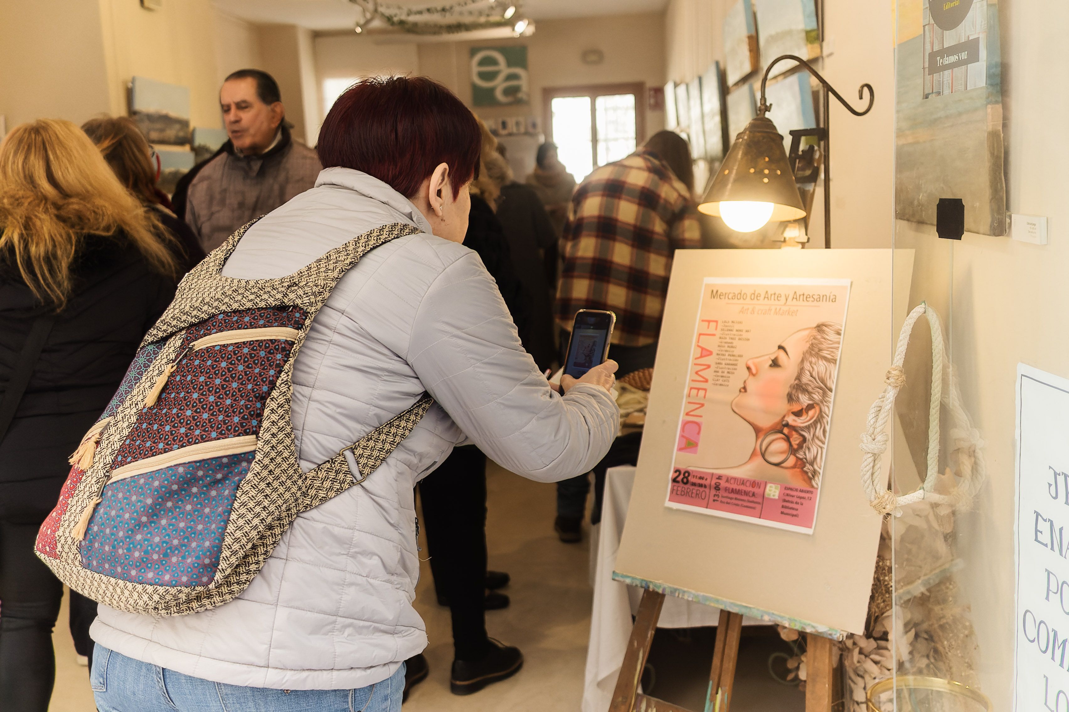 La puerta está abierta a las personas que asoman sus cabezas desde el exterior a la sala multicultural Espacio Abierto en Jerez. En su interior, resguardadas del frío, ocho mujeres colocan en distintas mesas obras de arte creadas con sus manos. Ilustraciones, mochilas, cuadros, adornos. En el mercado de arte y artesanía Art & Craft Market se observan todo tipo de artículos inspirados en la temática flamenca. Con motivo del 28F y la celebración del Festival de Flamenco, estas artesanas se han reunido con “la idea de compartir con vosotros todo el trabajo que realizamos”.