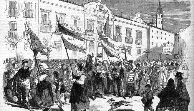 El movimiento obrero de la época estaba bajo el influjo de personas como Fermín Salvochea, que clamaban contra las quintas de un modo más que decidido: “Cuando el 62 entré yo en quinta, me llamaron repetidas veces al Ayuntamiento, sin resultado alguno, pues había formado el deliberado e inquebrantable propósito de realizar un acto de propaganda por el hecho (a la que siempre he tenido gran predilección) contra la contribución referida. Y cuando después supe que había salido soldado, le manifesté a mi padre mi propósito. Suplicándole no me librara, pero él, no comprendiendo o aparentando no comprender todo el alcance de la iniciativa individual. y atentó sólo al bien del momento, resolvió lo contrario. bastante a pesar mío. Después de los recientes descalabros, ¿quién dudará que esos numerosos ejércitos permanentes sólo son eficaces contra el pueblo mismo, mar de cuyo seno han emergido y en cuyas aguas, más tarde o más temprano, han de venirse al fin a sumergirse? Sobre todo, radicales, socialistas y anarquistas todos estamos conformes, existiendo entre todas las fracciones una rara unanimidad. El terreno está, pues abonado, y preparado para la acción. y los que den el primer paso han de tener a su favor la fuerza potente e incontrastable de la opinión pública” (en I. Moreno: Aproximación histórica a Fermín Salvochea, Dip. Cádiz, 1982, p. 272).
