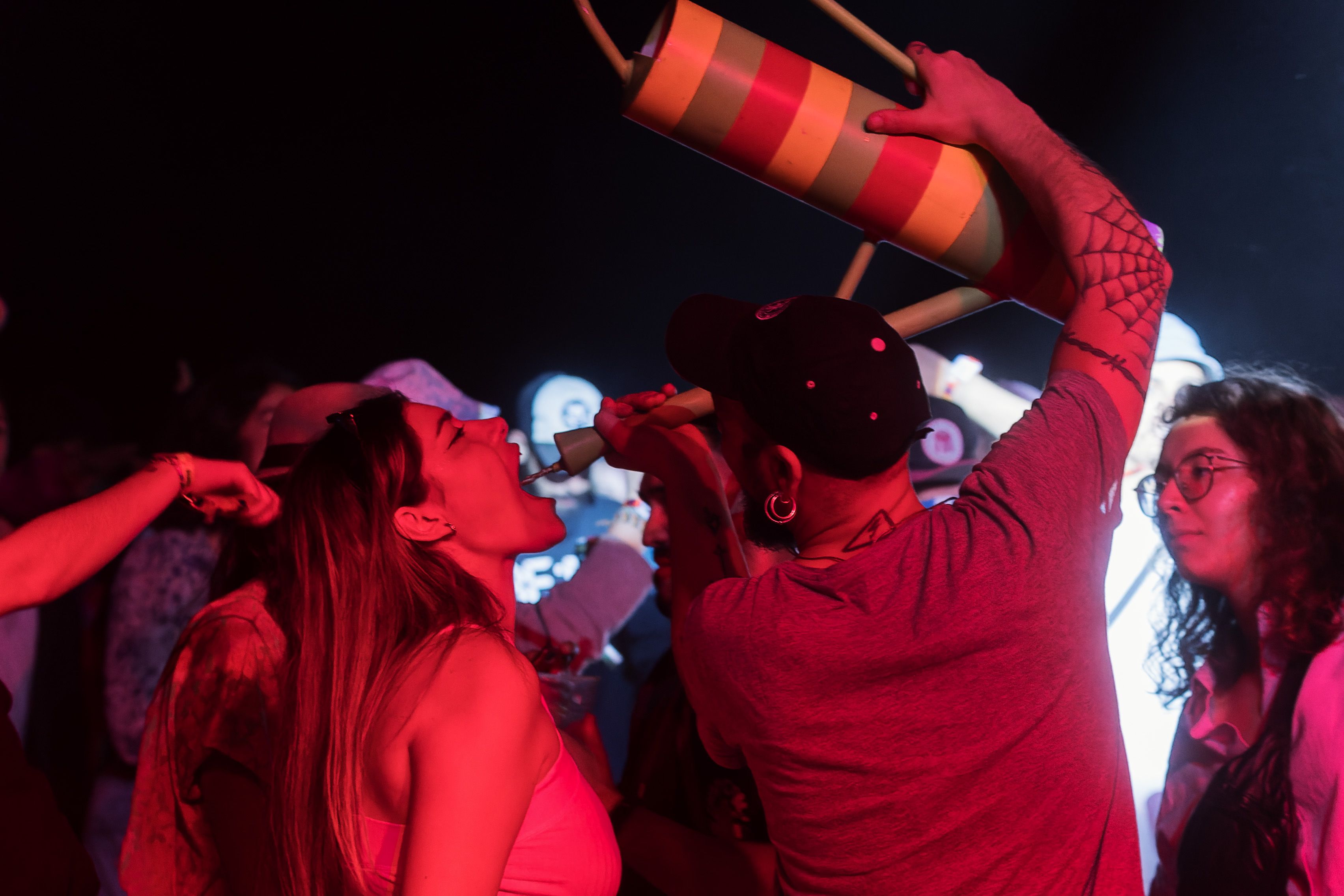 A las 23.00 horas, las letras duras y directas de Machete en boca se colaron en los oídos de los asistentes, que atendieron a las MC La Prima y San y el DJ Falso Ídolo, grupo de rap y dancehall que empezó a petarlo en Valencia. Las voces que se encargaron de cerrar una noche movida fueron las de Laüra Bonsai y Felinna Vallejo, componentes de Las ninyas del corro, un grupo con origen en la periferia de Barcelona que apuesta por el rap tradicional con mensajes cargados de referencias.