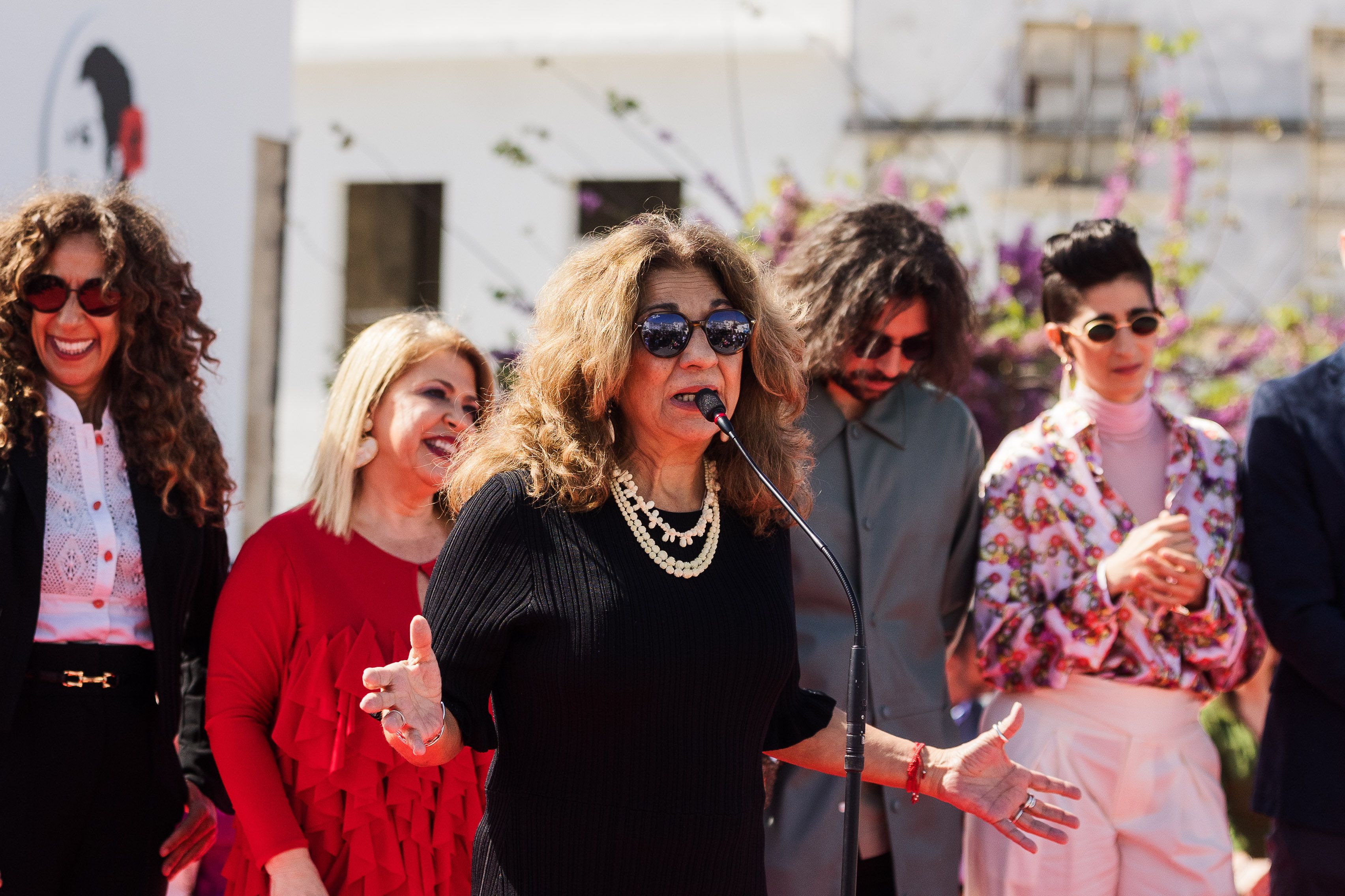 La alcaldesa, junto a la familia Flores, el pasado viernes en la inauguración del Centro Cultural Lola Flores.