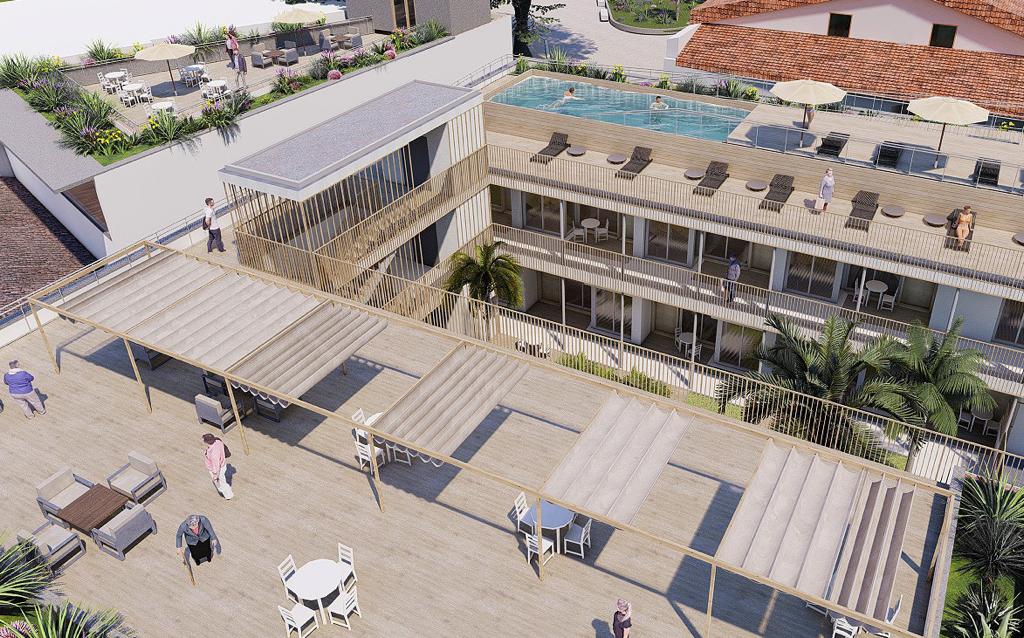 En un complejo de casi 12.000 metros de superficie, Residencia Palmera Plaza tendrá residencia, viviendas tuteladas y un espacio hospitalario con centro de especialidades. Thor, que como se ha dicho, va de la mano de Cofinimmo, una de las empresas inmobiliarias más importantes de Bélgica —cotiza en bolsa y se especializa en propiedades de alquiler—, prevé crear alrededor de 100 empleos directos en un megaproyecto sociosanitario que, de paso, acabará con un punto negro en la primera corona del centro de Jerez desde que hace más de cinco años cerrase el hotel.