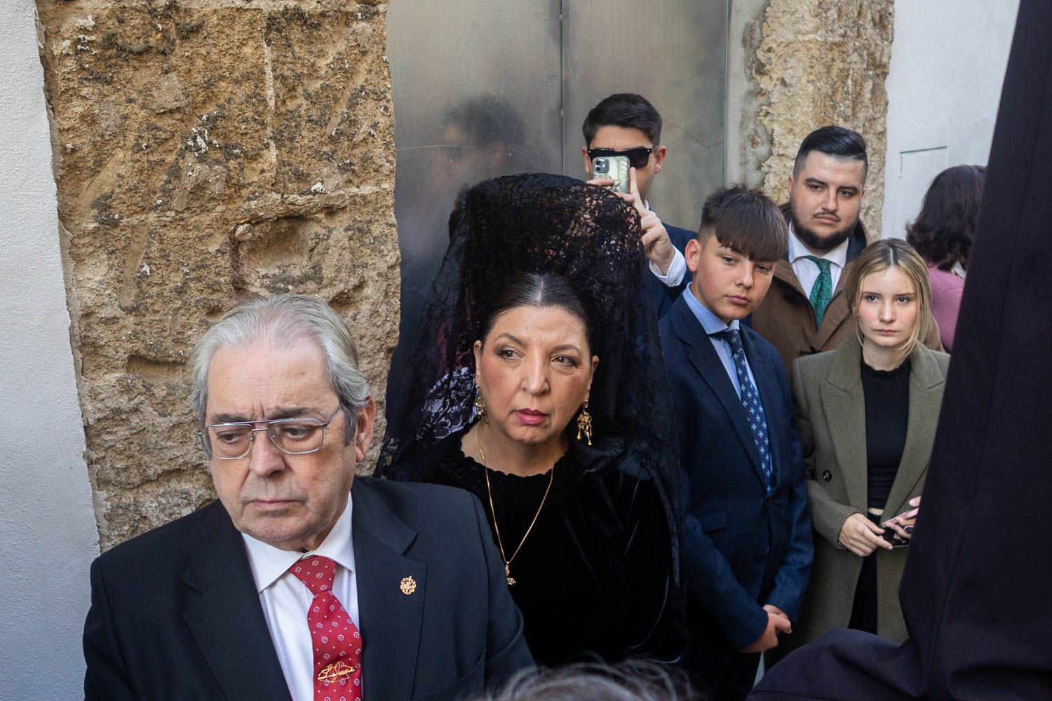 Un elemento que cada vez se ve menos son las mantillas, el atavío femenino más clásico de los Jueves y Viernes Santo. Por lo que se pudo ver en las calles, la tendencia es cada año a la baja. No está de moda y tampoco se incentiva vestirla como antaño.