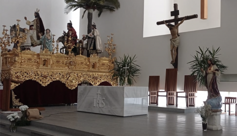 El paso será el de salida del Domingo de Ramos al completo, es decir, con toda la iconografía e incluso con su característica palmera: “Enseñamos lo que se ha conseguido en el paso de misterio en estos 75 años”, justificó el hermano mayor, Juan Miguel García Pérez, al no haberse incorporado ninguna novedad o modificación excepcional.