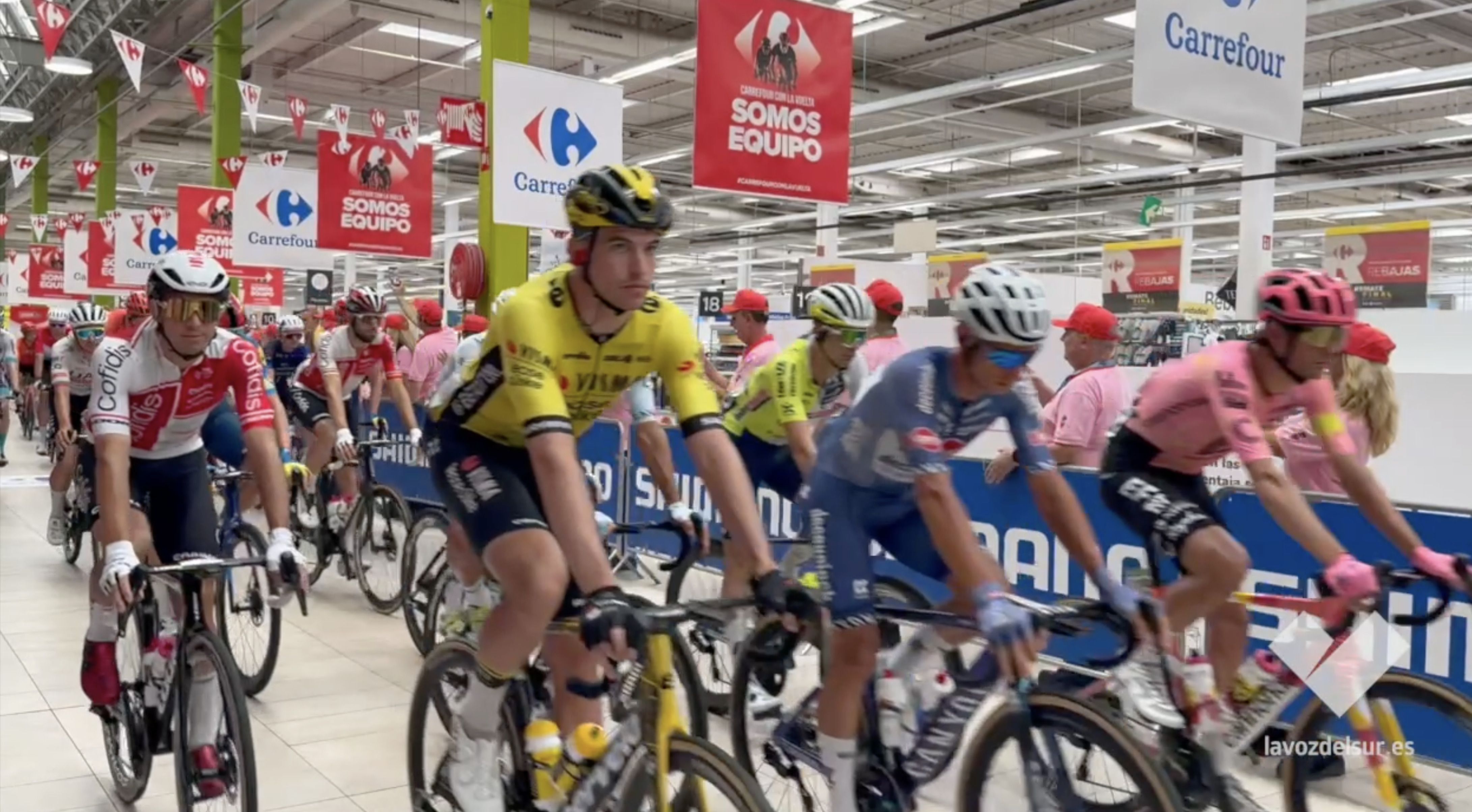 Vídeo | El paso del pelotón por los pasillos del Carrefour Sur de Jerez