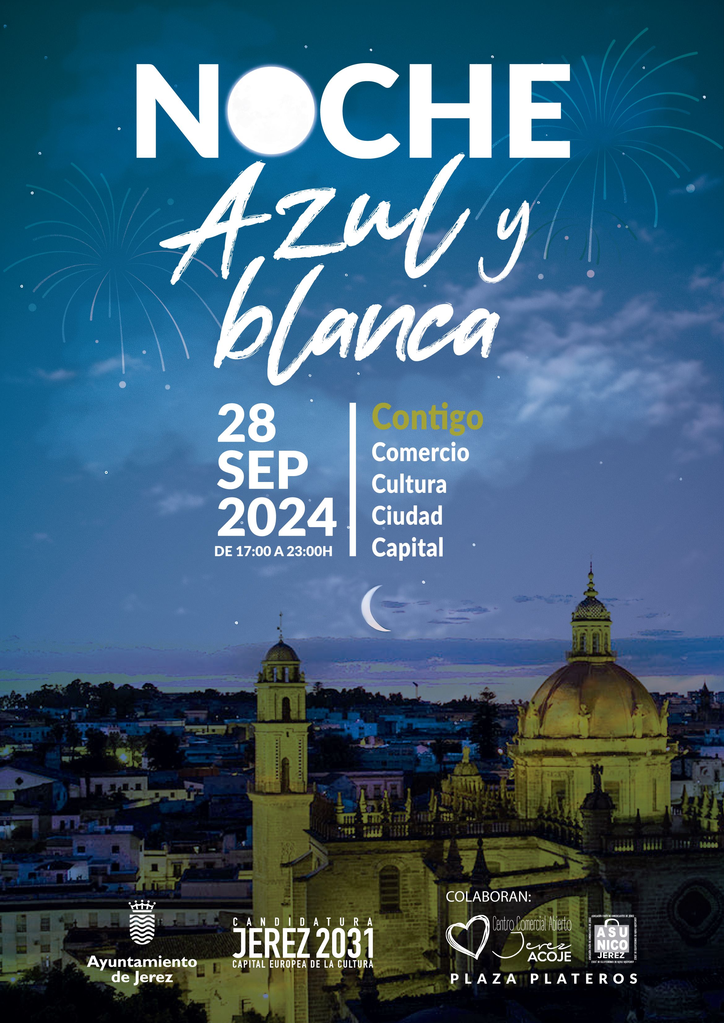 La ‘Noche Azul y Blanca’ se convertirá también en un escaparate para disfrutar de la actividad expositiva y de promoción de los comercios de Jerez, coordinada por las asociaciones de comerciantes de la ciudad, a lo largo de la calle Larga. Por su parte, la Plaza Doña Blanca acogerá expositores de productos de Comercio Justo, alimentación, salud y belleza.