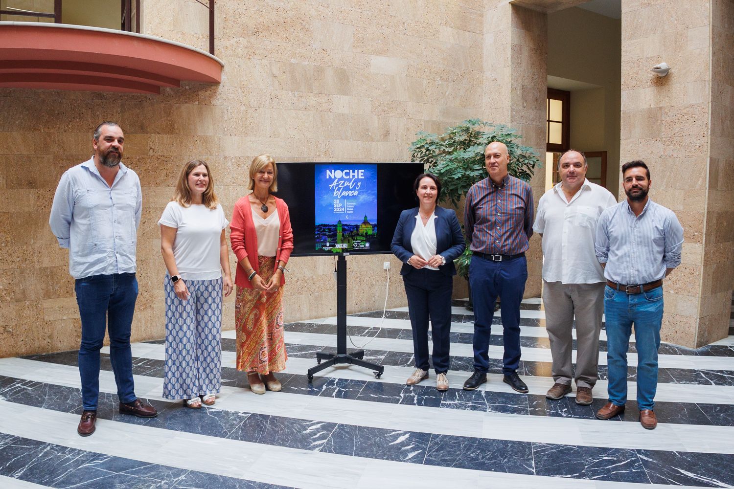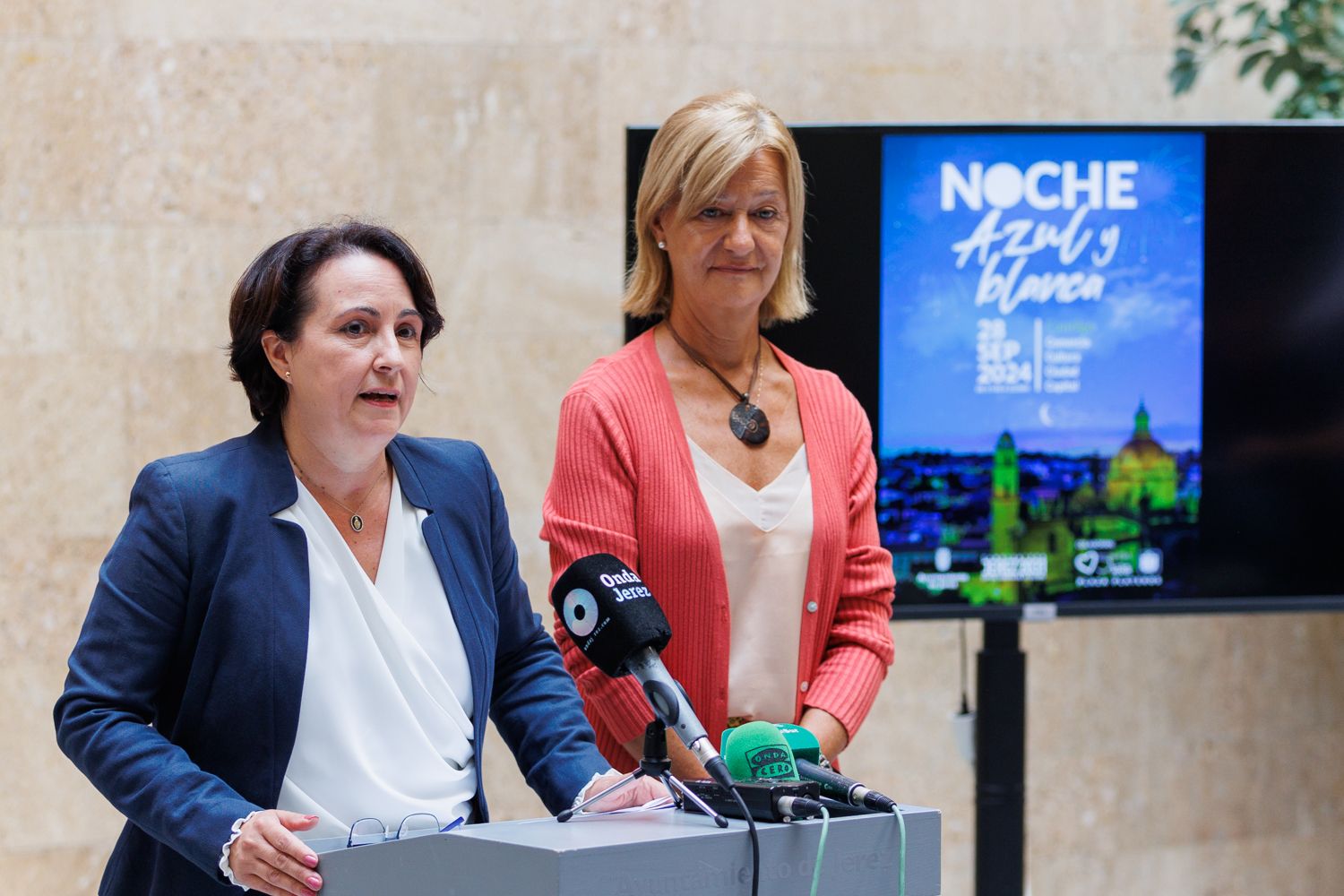 La delegada de Comercio y Consumo, Nela García, acompañada de Carmen Pina, delegada de Participación Ciudadana, ha presentado la ‘Noche Azul y Blanca’ que se celebrará el sábado, día 28 de septiembre, de 17 a 23 horas, en cinco espacios temáticos diferenciados y vertebrados por la calle Larga de Jerez. En torno a esta arteria, el ciudadano podrá encontrar diferentes propuestas comerciales y culturales en la Alameda del Banco, la Plaza Doña Blanca, la Plaza del Arenal y la Plaza de la Asunción, además de en la citada calle.