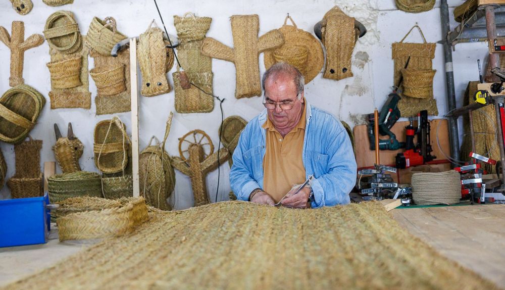 Primero probó con una tienda física en Chiclana. Pero optó por cerrarla y quedarse solo con este taller desde donde demuestra ser un apasionado de lo que hace. No hay nada más que verle trabajar para captar el amor que Antonio siente hacia el esparto. “Me quedo bien. No soy yo mejor que nadie, ni nada. Me quedo bien cuando lo hago”, dice mientras continúa mostrando su mundo.