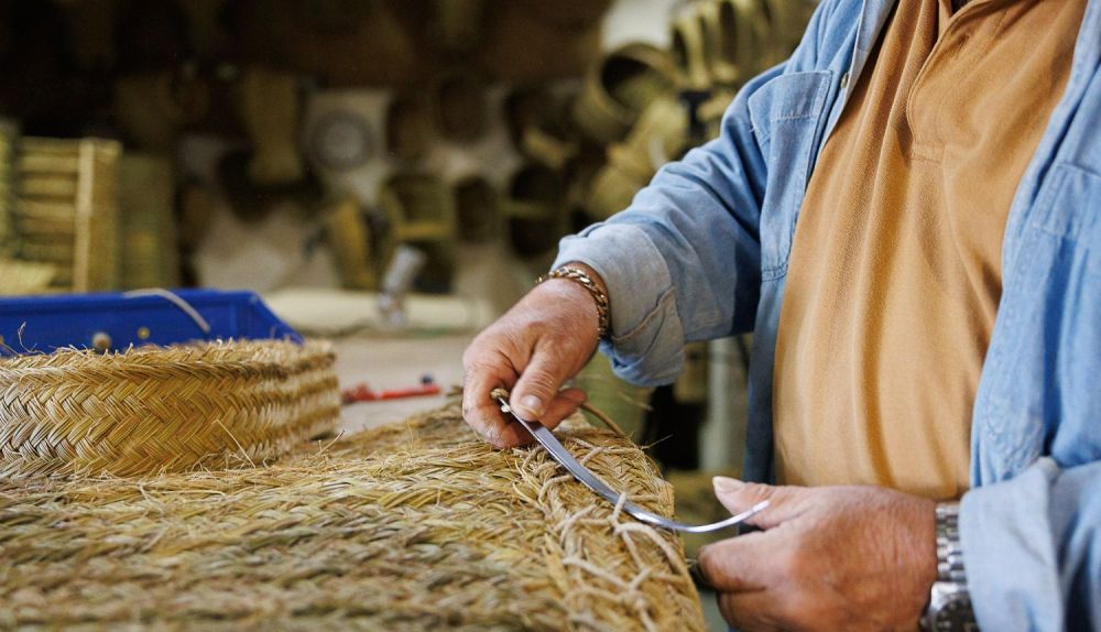 “Y tenía razón”, dice el espartero, que interrumpe su faena para adentrarse en las profundidades del taller. A su alrededor hay cactus, alfombras, espejos o lámparas. Artículos de decoración que vende in situ pero, sobre todo, por internet.