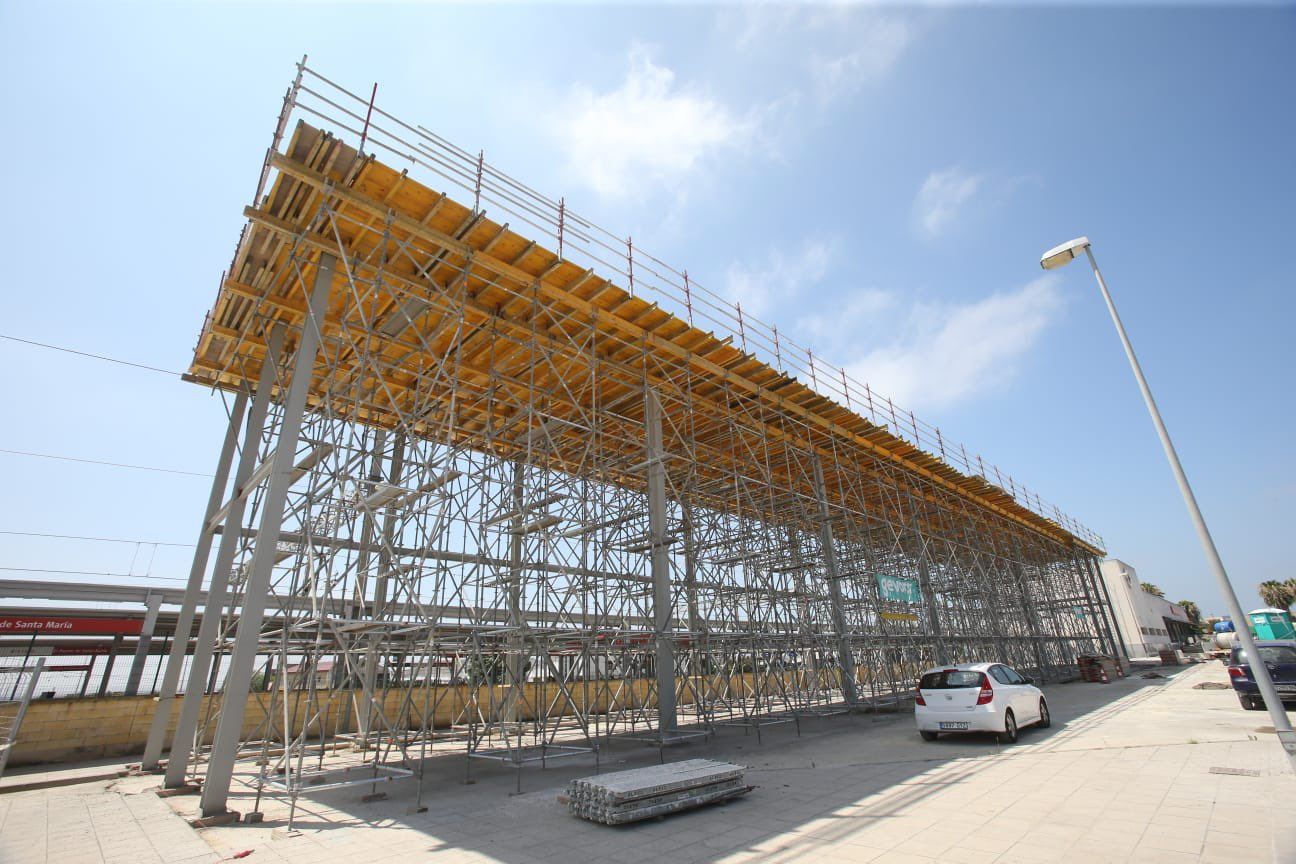 Las obras de la nueva estación de autobuses de El Puerto avanzan a buen ritmo en pleno verano. Así lo ha comprobado de primera mano este lunes la consejera de Fomento, Articulación del Territorio y Vivienda, Rocío Díaz, que se ha desplazado al municipio para supervisar los trabajos in situ. Junto al alcalde, Germán Beardo, ha recorrido la enorme estructura que ya se levanta frente al monasterio de la Victoria.