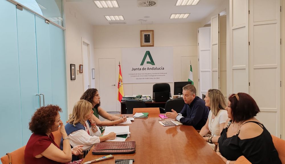 Isabel Paredes, delegada territorial de Desarrollo Educativo, Formación Profesional y Universidad, ha recibido en Cádiz a la comunidad educativa del centro, representada por el equipo directivo y por integrantes de la AMPA, para felicitarles por la obtención de este reconocimiento.