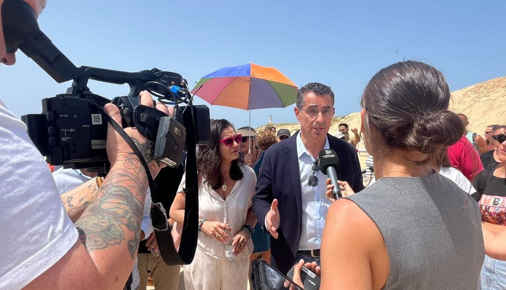 El alcalde Miguel Molina y el delegado de Playas, Juan Miguel Muñoz, ambos de la formación Andalucía x Sí, tomaron la palabra en nombre de colectivos y asociaciones de la zona para exigir "la regeneración" de la playa "con la arena que se está retirando de la carretera del Faro de Trafalgar".