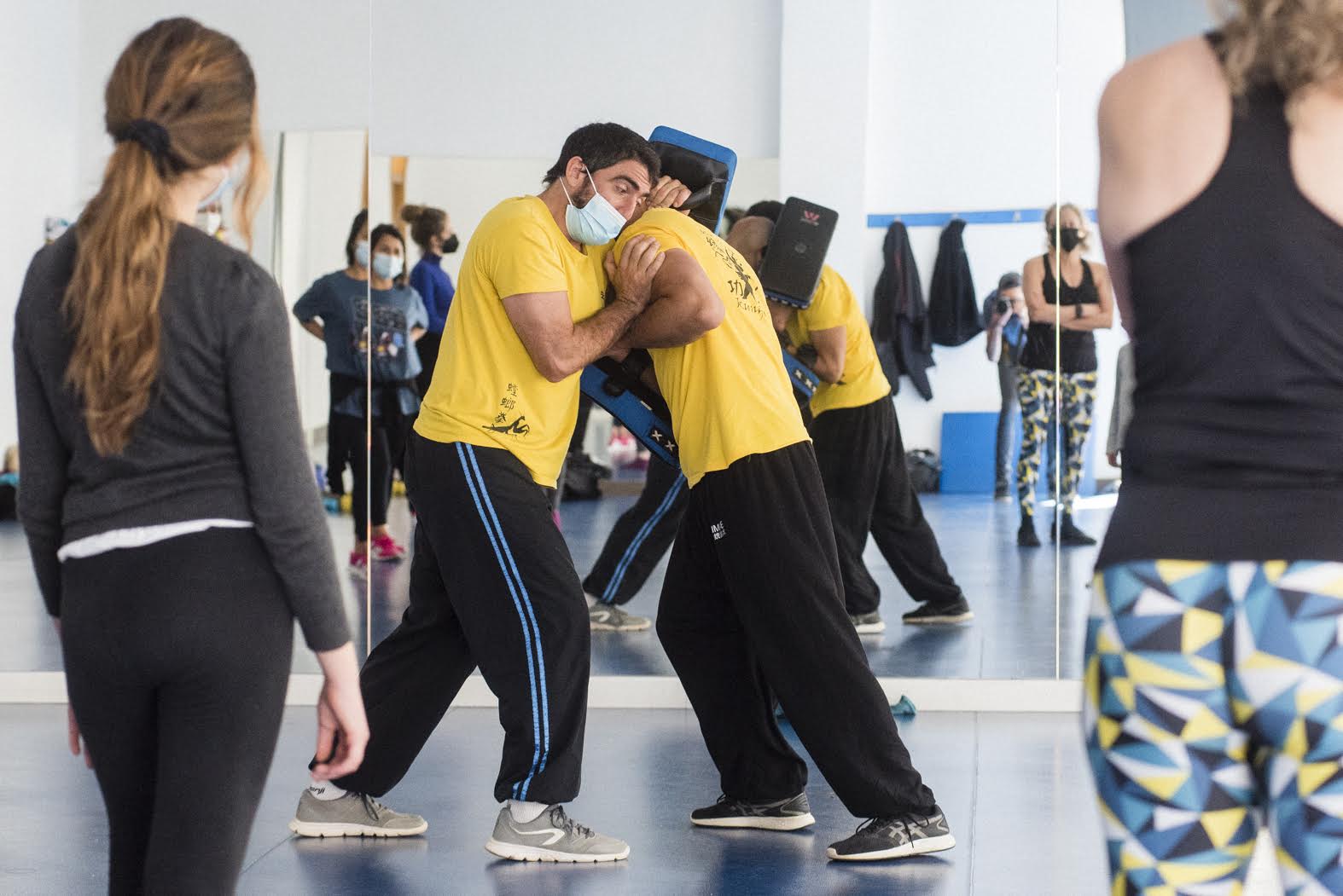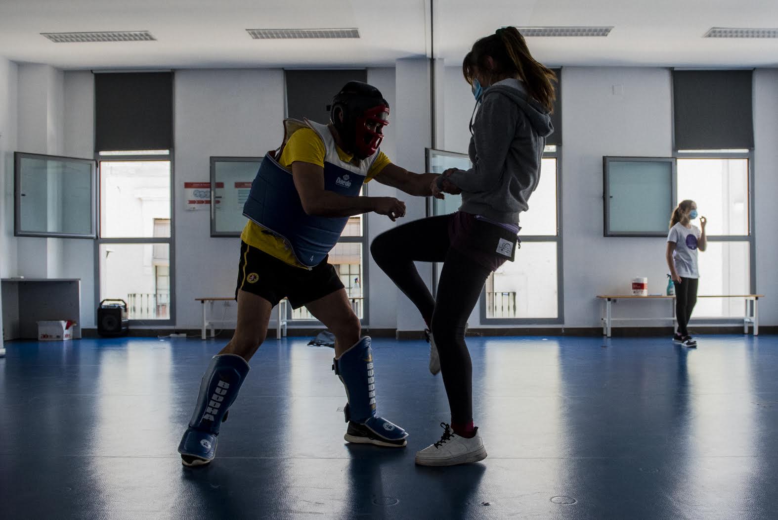La energía grupal sube conforme avanza la clase y hay total atención entre las chicas. "Pasamos a la práctica con un par de herramientas y golpes básicos utilizando los codos y las rodillas, para luego ir con los ataques continuos con protecciones", comenta Jero, que avisa que "este curso no permite que una persona pueda defenderse perfectamente, sobre todo busca que la persona conecte con todo lo que es capaz de hacer y sacar todo de dentro: es un ejercicio de empoderamiento". En este sentido, añade que es fundamental "entender nuestras capacidades para defendernos y sobre todo, nuestro derecho a hacerlo".